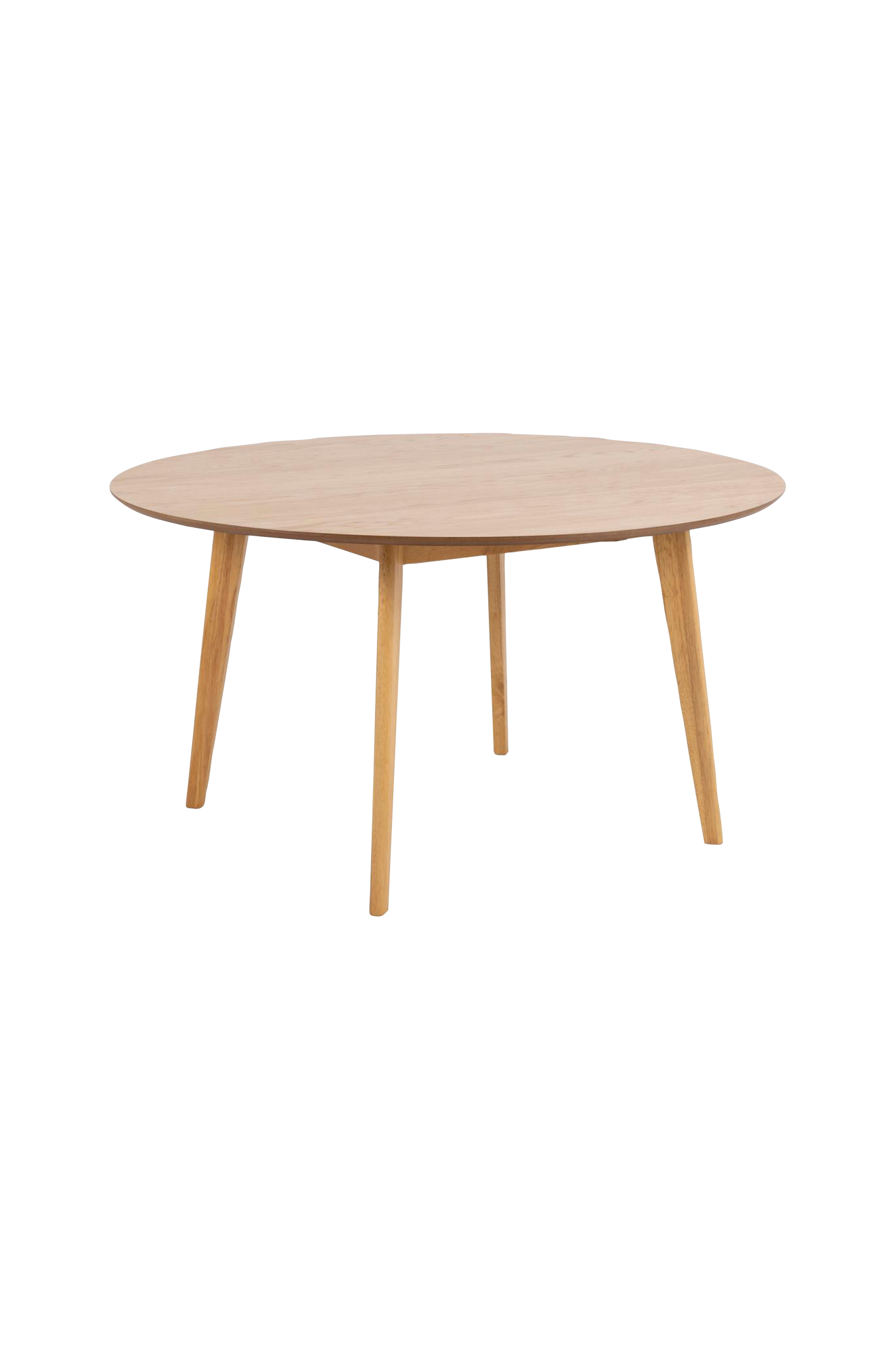 Få rummet til at se større ud. Da dette spisebord er rundt, er det perfekt til mindre rum. Det er også let at skabe en hyggelig stemning når alle sidder tæt på hinanden. Takket være udseendet der ligner naturlig eg, passer dette bord godt til både mørke og lyse farver. Bordplade af lakeret MDF.