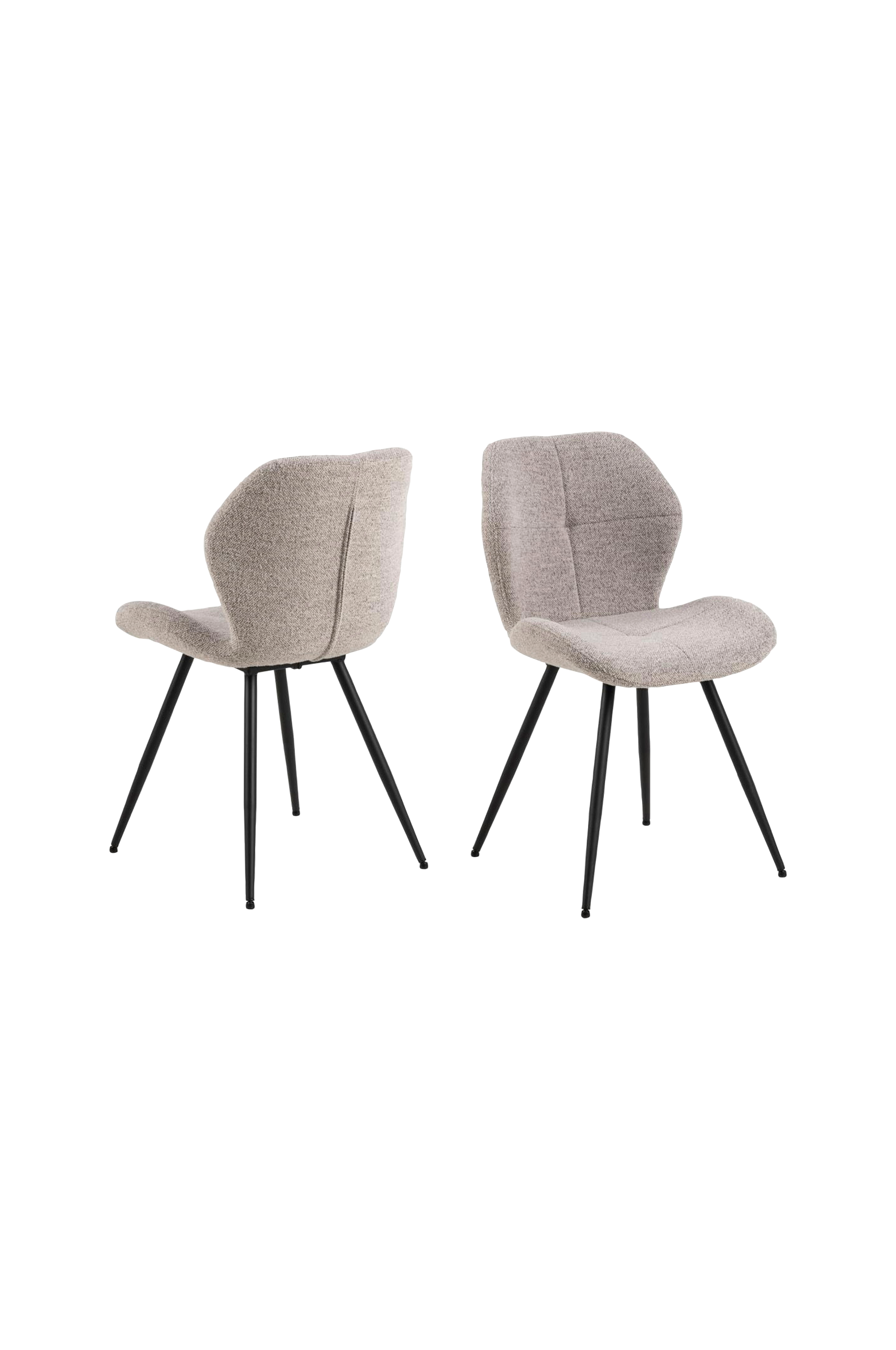 Pift din spisestue op med denne elegante, beige spisebordsstol. Den buede form skaber en smuk silhuet, mens det polstrede sæde i blødt boucléstof sørger for, at du sidder behageligt. De firkantede syninger gør sædet mere struktureret og tilfører spisestolen et moderne udtryk.