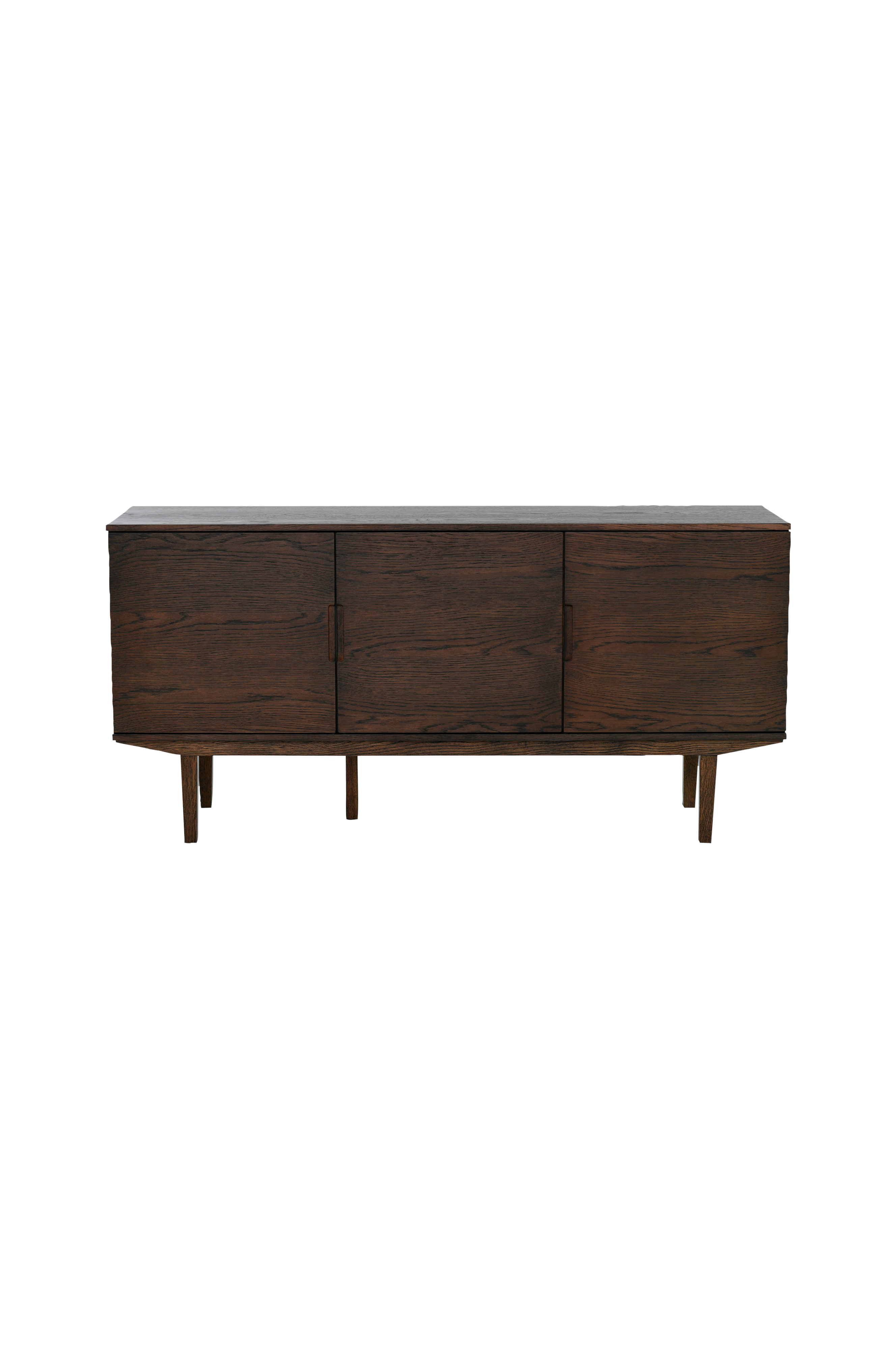 Denne stilfulde skænk har en glat, lakeret egefinér, der fremhæver træets naturlige skønhed. Hvert skab er udstyret med soft-close-døre for et roligt og raffineret touch.