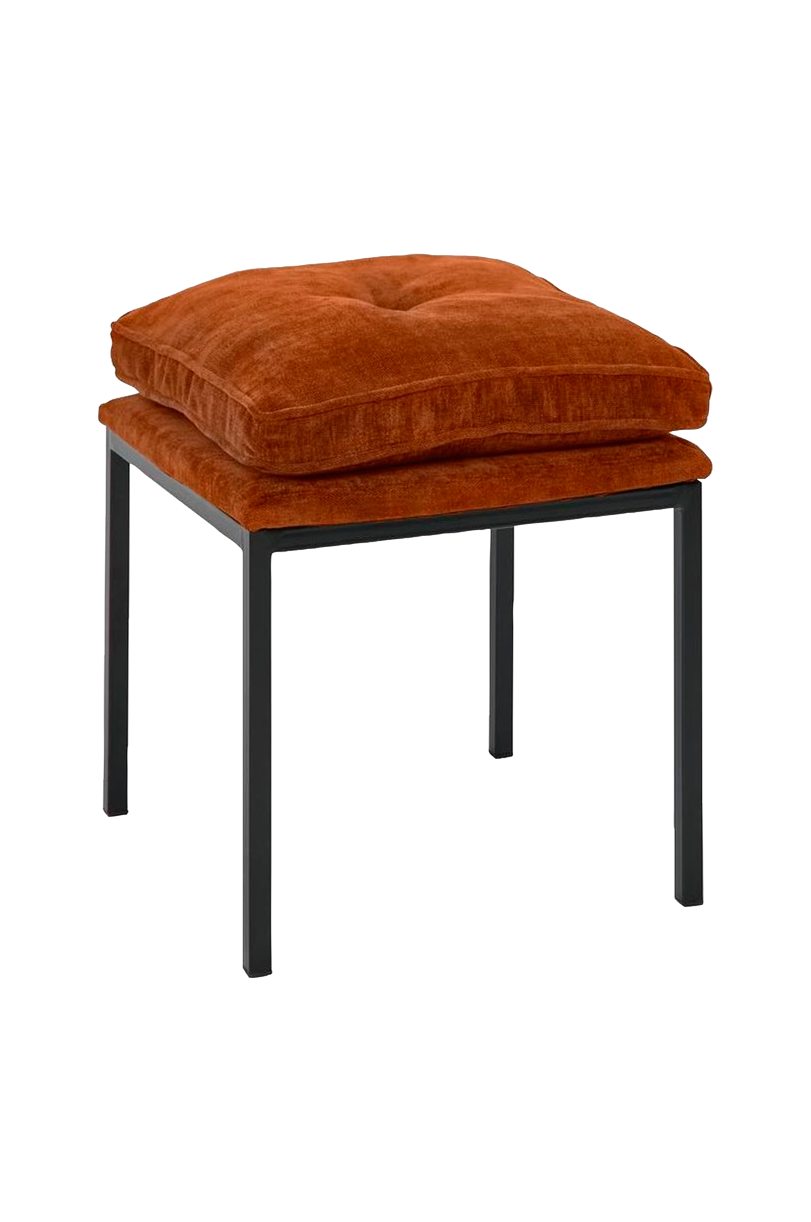 Skammel med en tyk siddehynde. Lakerede metalben.