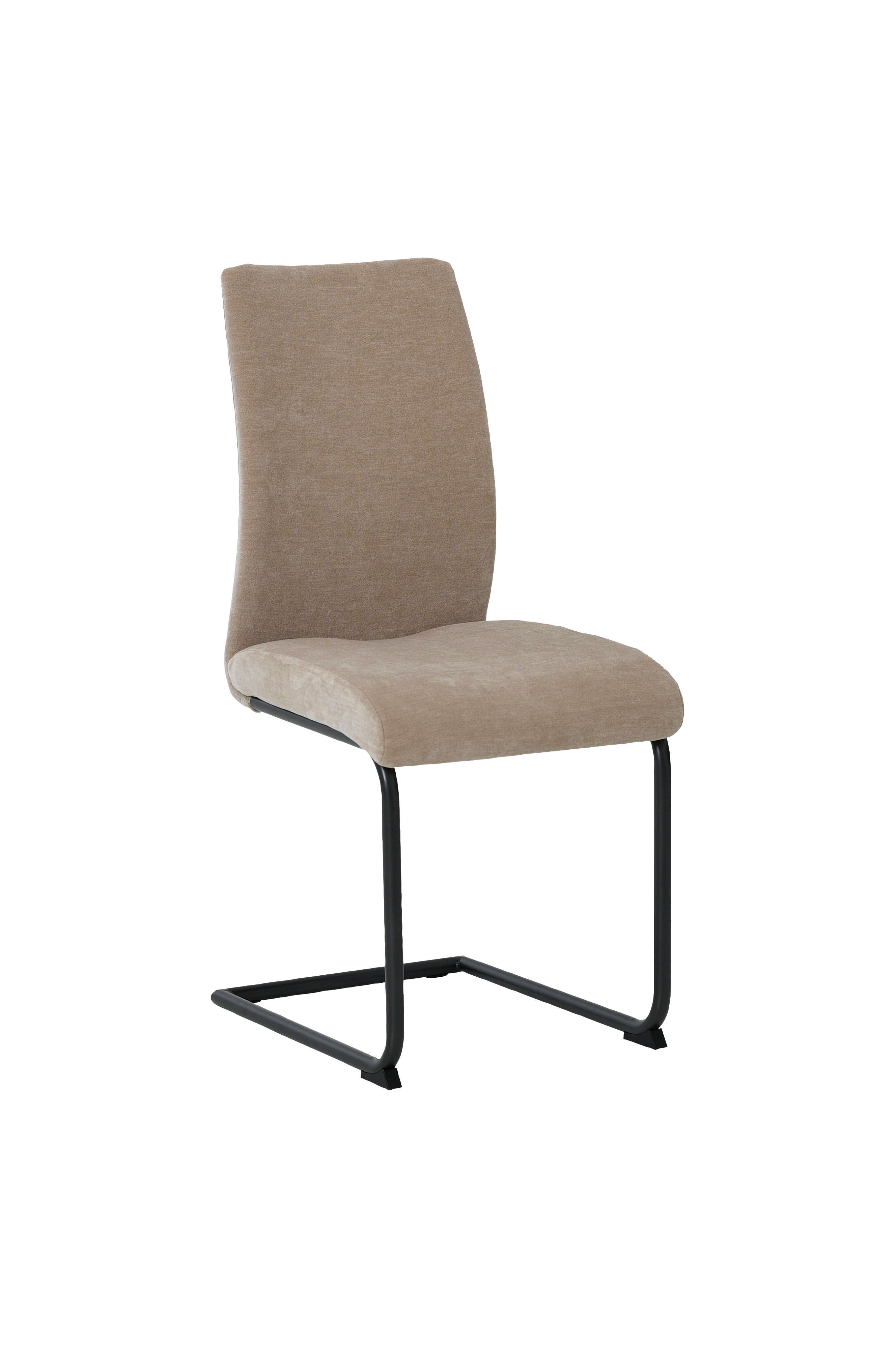 Moderne spisebordsstol i slidstærkt stof. Stolen har metalben med et design, der giver et let sving.