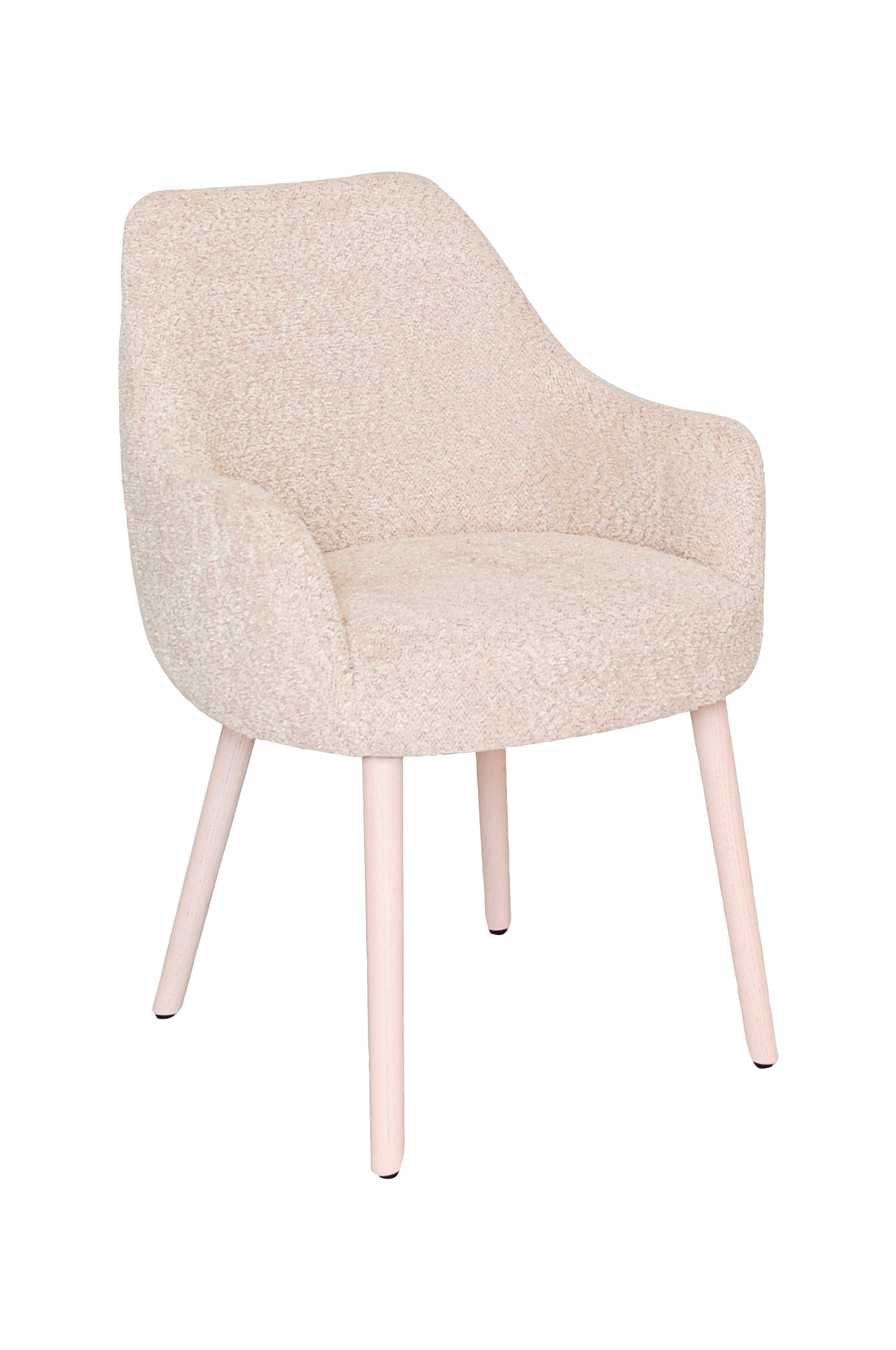 Moderne og komfortabel spisebordsstol i stof og lakerede egetræsben.