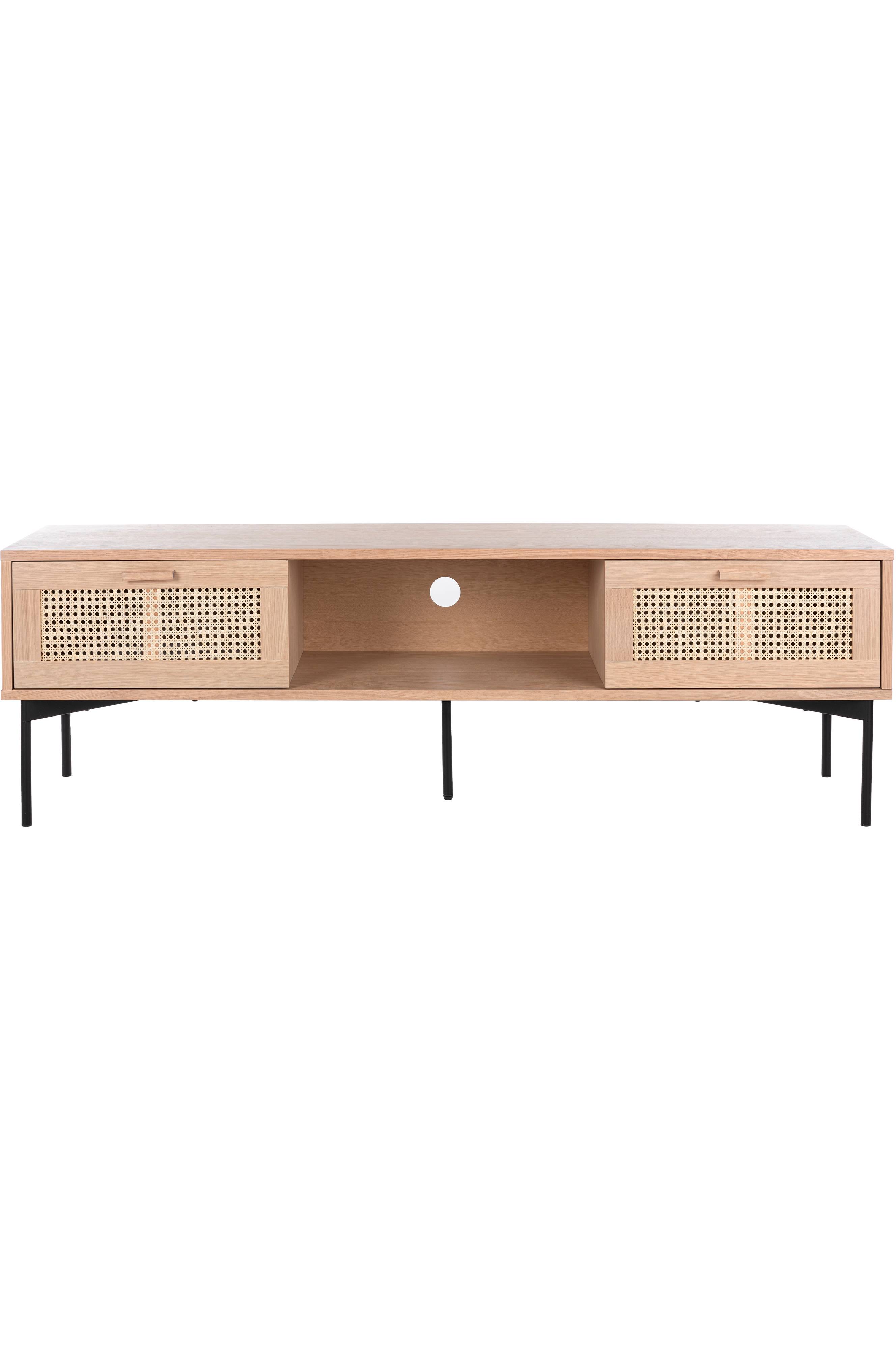 Tv-bænk i lakeret eg, rotting og metal med 2 skuffer. Softclose i skufferne.