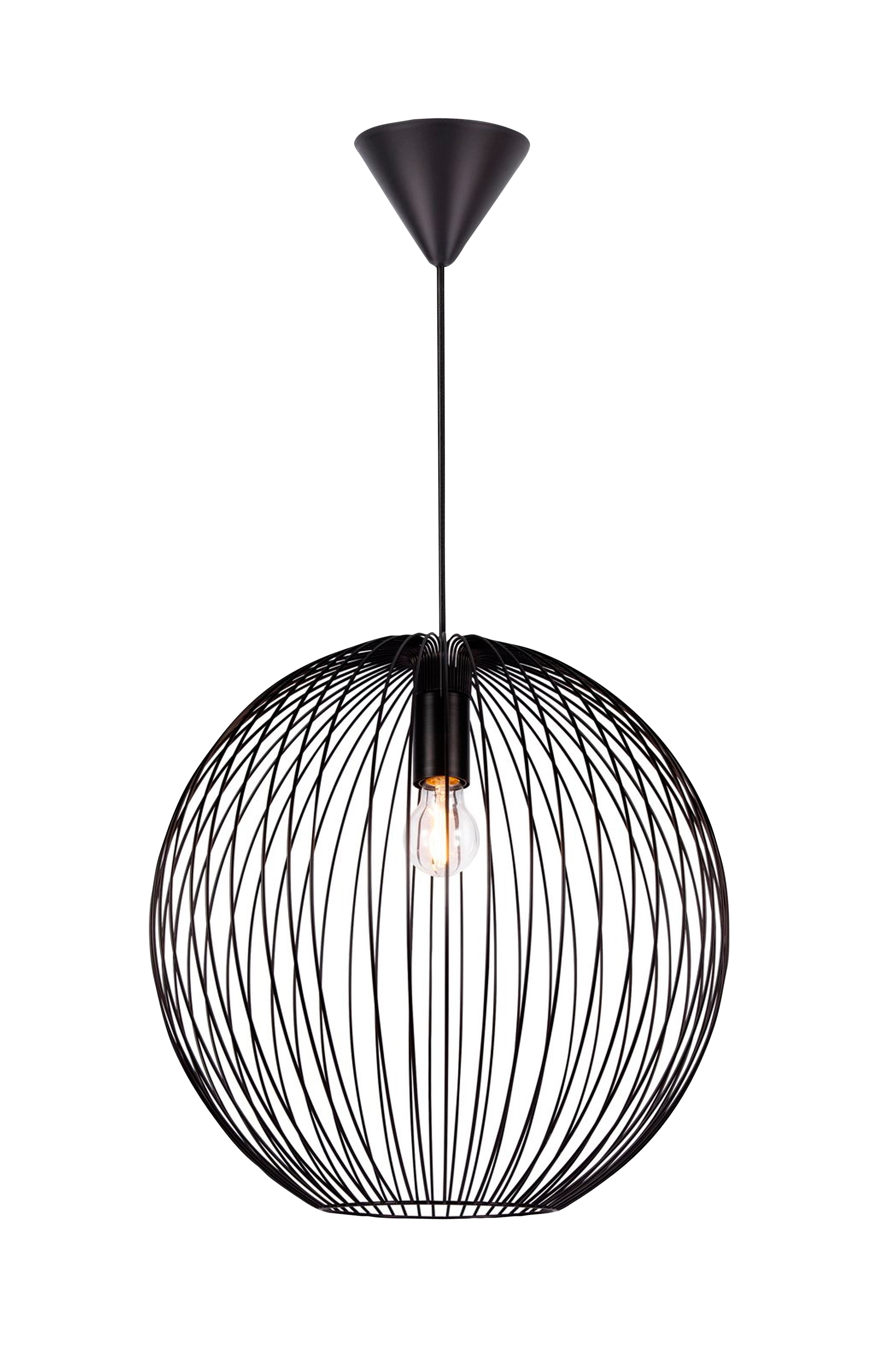 Beroni pendlen har et markant minimalistisk design, der skaber et fascinerende spil af lys og skygge, når den er tændt. De bukkede metaltråde skaber et åbent og luftigt udtryk, hvor du kan skabe dit eget designudtryk ved at tilføje en dekorativ pære.