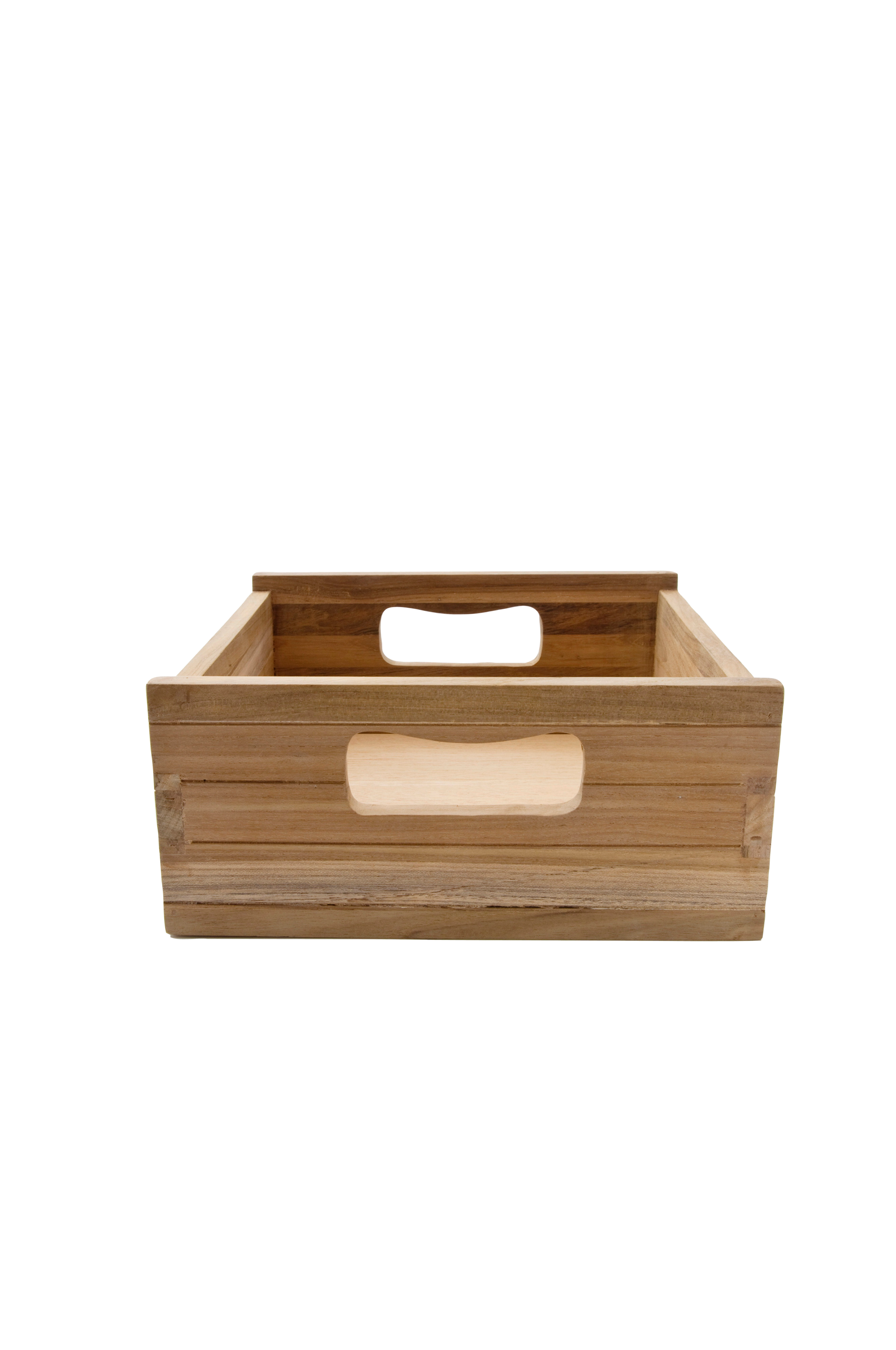 De solide teaktræskasser gør opbevaring lidt sjovere. I et køkken kan vi godt lide at gemme friske grøntsager og krydderurter, der flyder frit, eller andre steder i hjemmet kan man opbevare børnenes legetøj eller hobbyartikler.