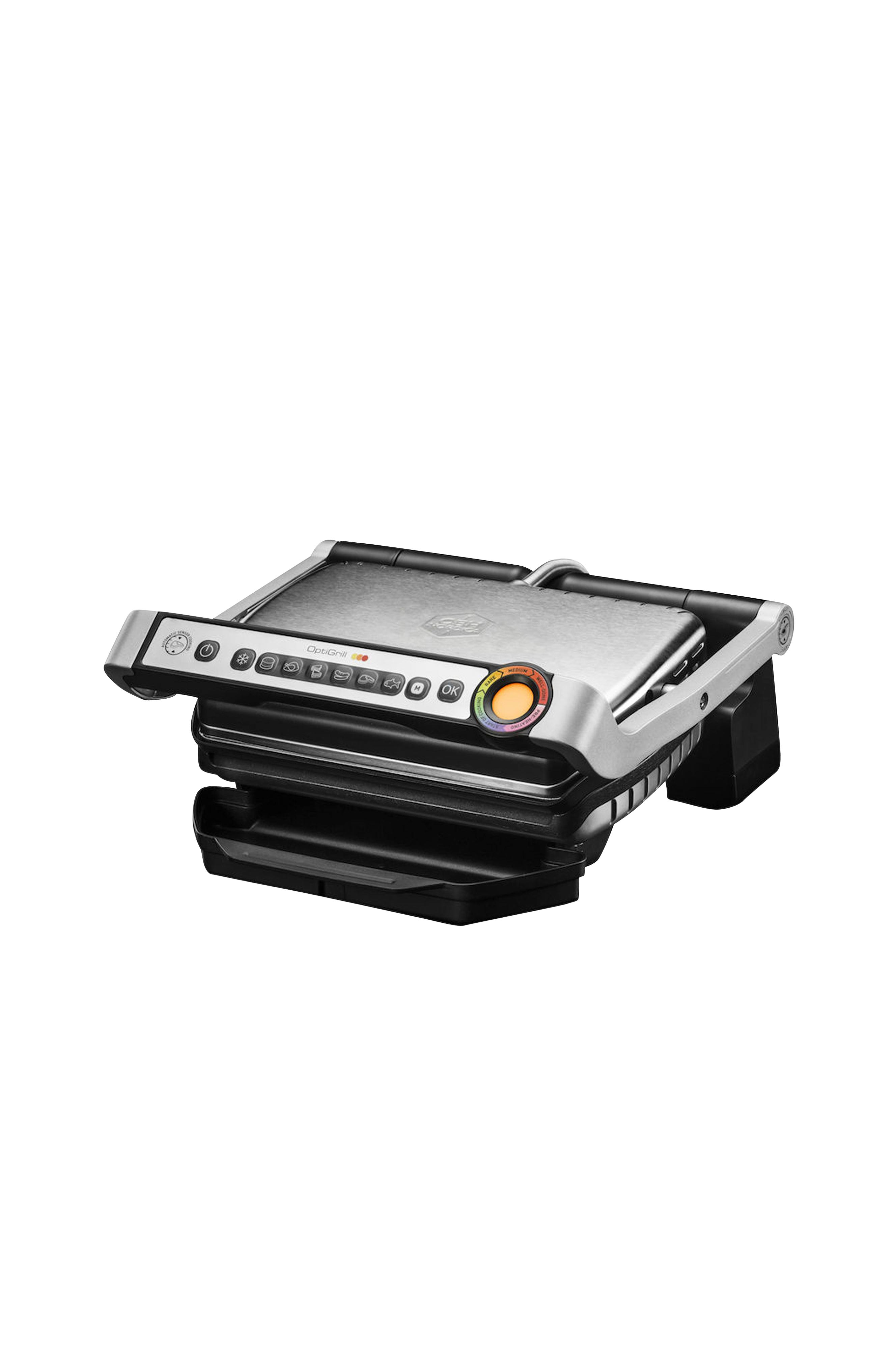 OptiGrill er en unik, innovativ grill der med avanceret teknologi giver et perfekt grillresultat hver gang! Den er udstyret med en sensor der automatisk aflæser tykkelsen på kødet og indstiller timer og temperatur derefter. Indikatoren oplyser kødes tilberedningsgrad, fra rare til well done. Seks automatiske programmer til forskellige fødevarer; burgere, fjerkræ, panini, pølser, oksekød og fisk. Manuel indstilling til grillning af grønsager og frugt. 600 cm² grillflade, passer til 2-4 personer. Indikatoren viser når grillen er klar til brug. Aftagelige grillplader med non-stick belægning der tåler opvask i maskine.