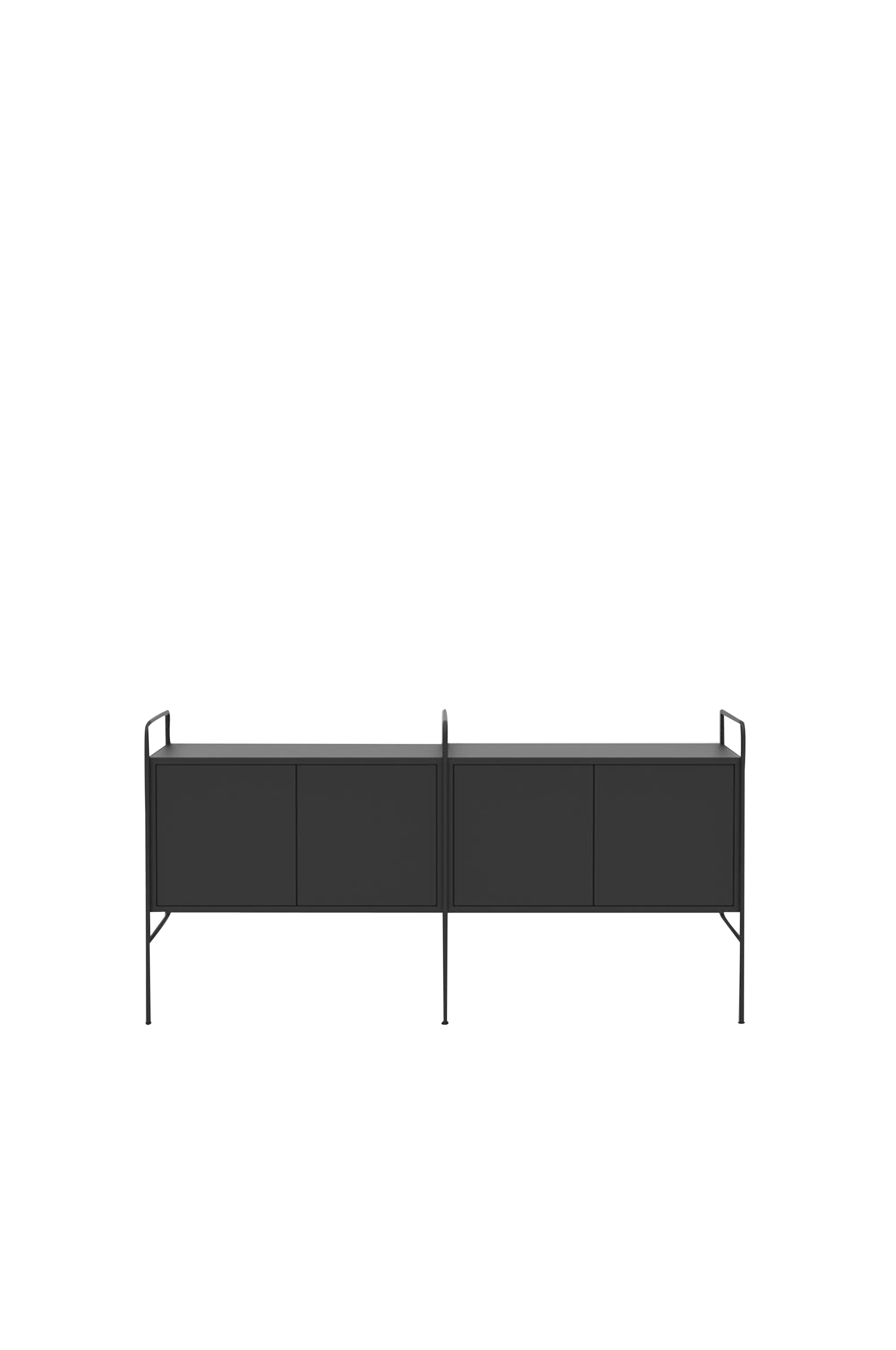 Skænk med skab. Fleksibelt, bygbart og skalerbart reol- og opbevaringssystem. Flere kombinationer med forskellige funktioner og farvemuligheder er tilgængelige. Design af Hans Thyge & Co. Stigerne er lavet af vandbaseret pulverlakeret metal med justerbare fødder. Skab i lakeret FSC-certificeret MDF.