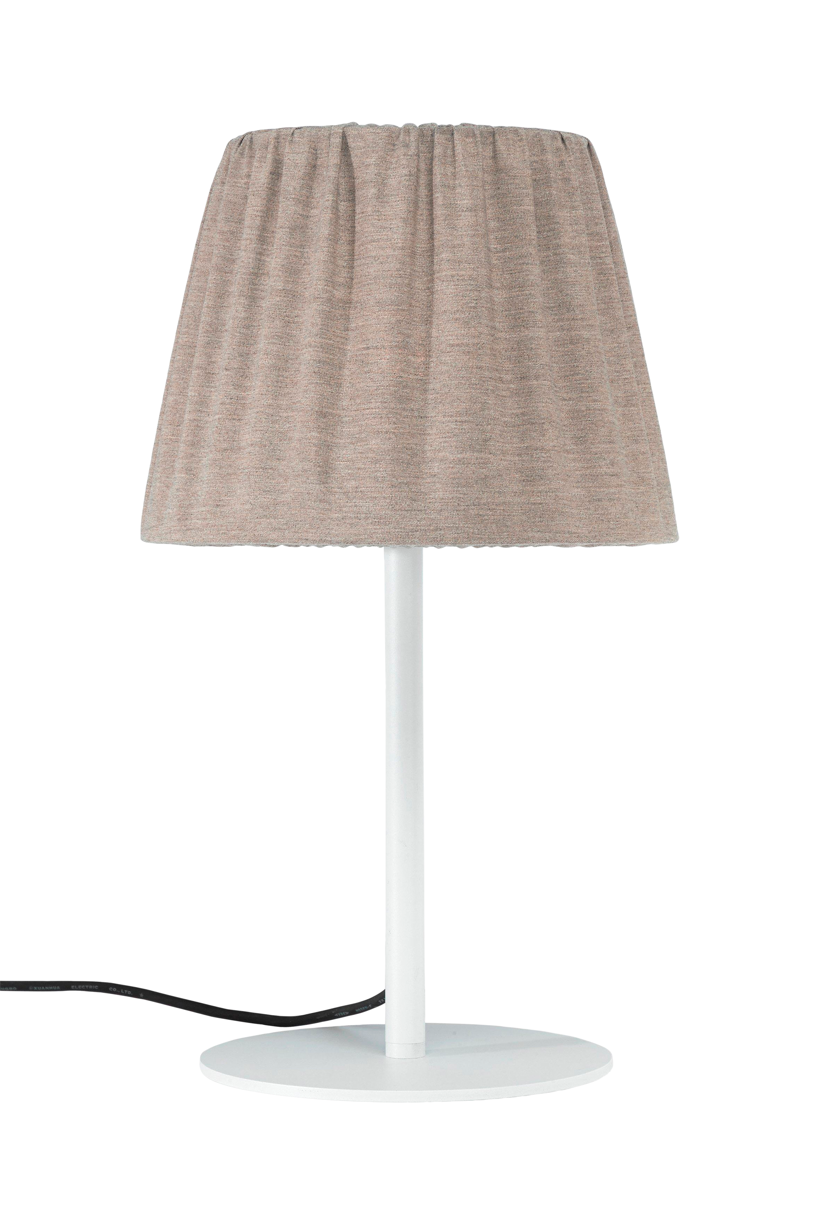 Agnar bordlampe til udendørs brug. Lampeskærmen er fremstillet i et stof af 100% akryl dralon som tåler at være udendørs i al slags vejr. Stoffet har en melange effekt og er oeko-tex 100 certificeret med høj lysresistens (5-7). Vand- og smudsafvisende teflonbehandling. Lampeskærmens stativ er galvaniseret for ikke at ruste. Foden har en E27 fatning til pære. Over pæren og fatningen sidder et hvidt plastlåg samt en pakning som beskytter mod væde. Lampeskærmen monteres på lampefoden med et særligt beslag. Lampefod og lampeskærm sælges kun samlet som et sæt.
