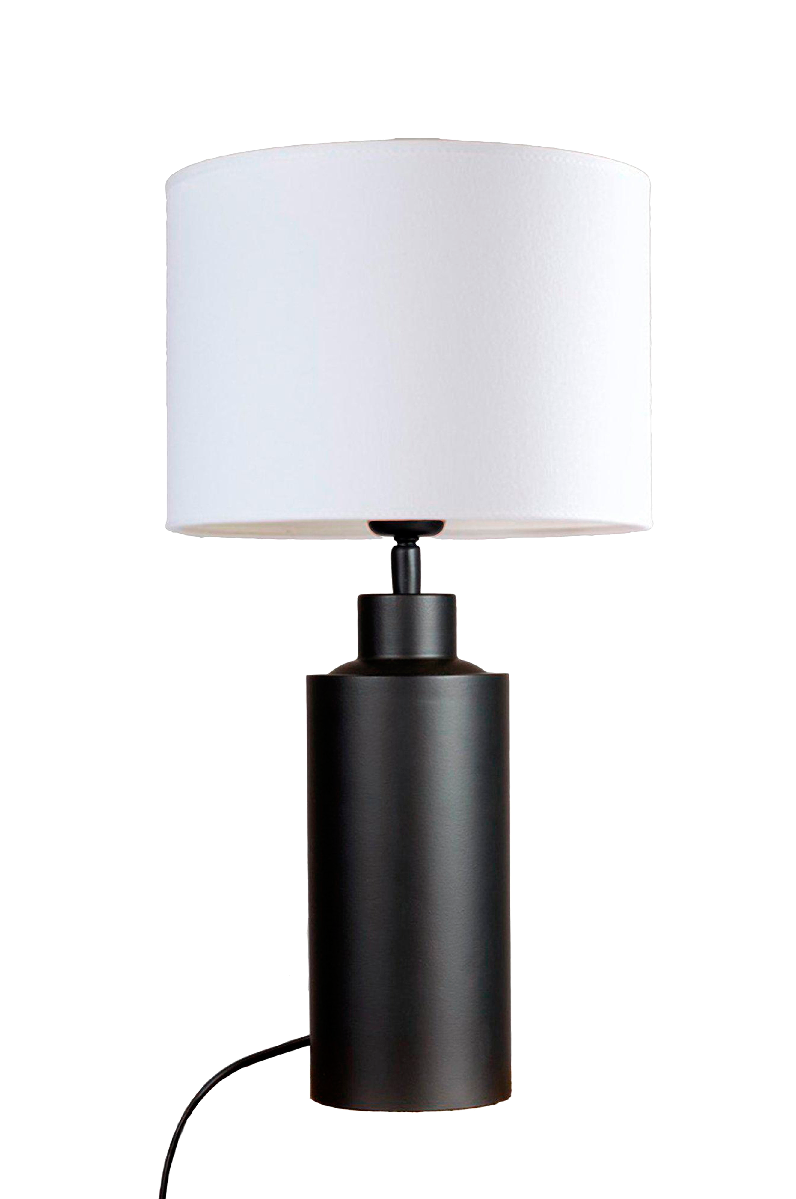 Solo lampefod med en cylinderformet skærm. Skærmen er 25 cm bred og 25 cm høj og har en fast e27-fatning. Lampefoden er 32 cm høj, og den samlede højde er 55 cm. 1,7 m ledning med afbryder og fladt EU-stik. E27-fatning. Max 40w. Ip20. Lyskilde medfølger ikke.
