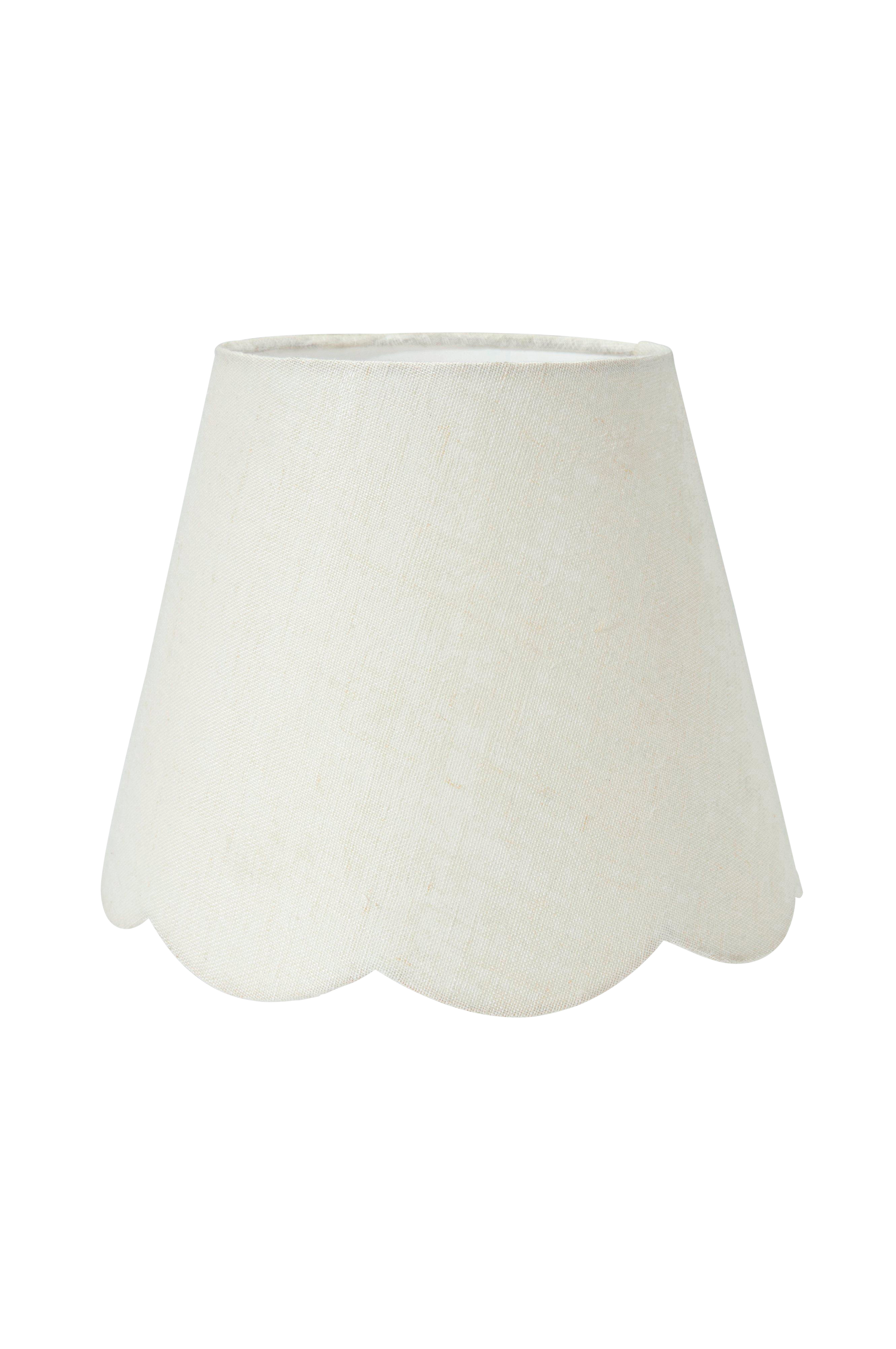 Jasmine lampeskærm er i et hørstof med fin struktur. Skærmen er let A-formet og har en bølget form forneden. E27 holder.