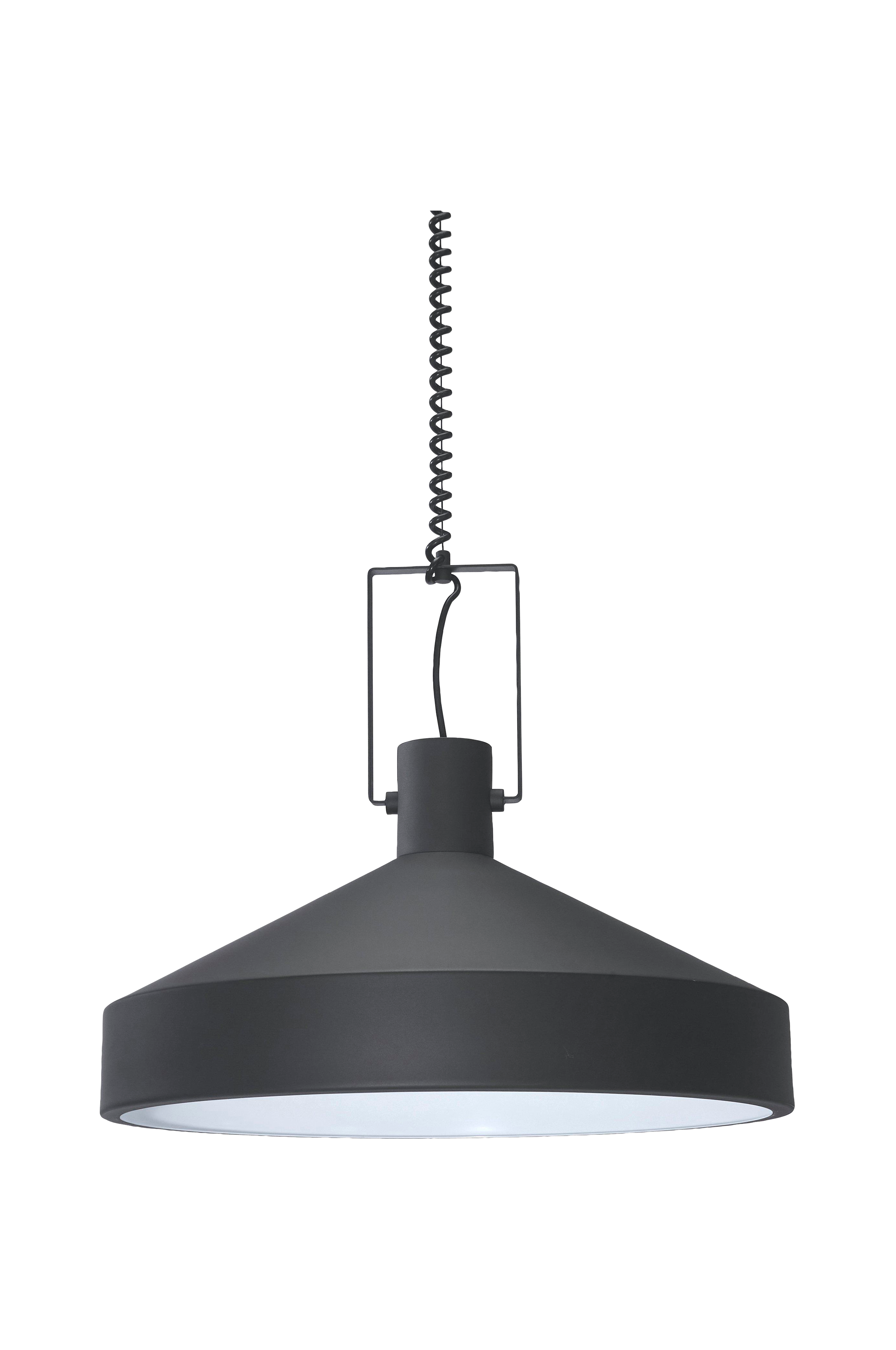 Loftlampe Jojo i metal med mat overflade. Lampen leveres med justerbar ledning så det er let selv at vælge højden efter behov. Sort ledning 100-180 cm og sort baldakin. Dette armatur har fast installation, det er en udgang fra baldakinen så ledningen nemt kan forlænges efter behov. Passer til pære med E27-fatning, maks. 40 Watt. Der medfølger en diffuser som giver et behageligt lys. Lyskilde og loftkontakt købes separat. Mål: Højde 33 cm, Ø 55 cm