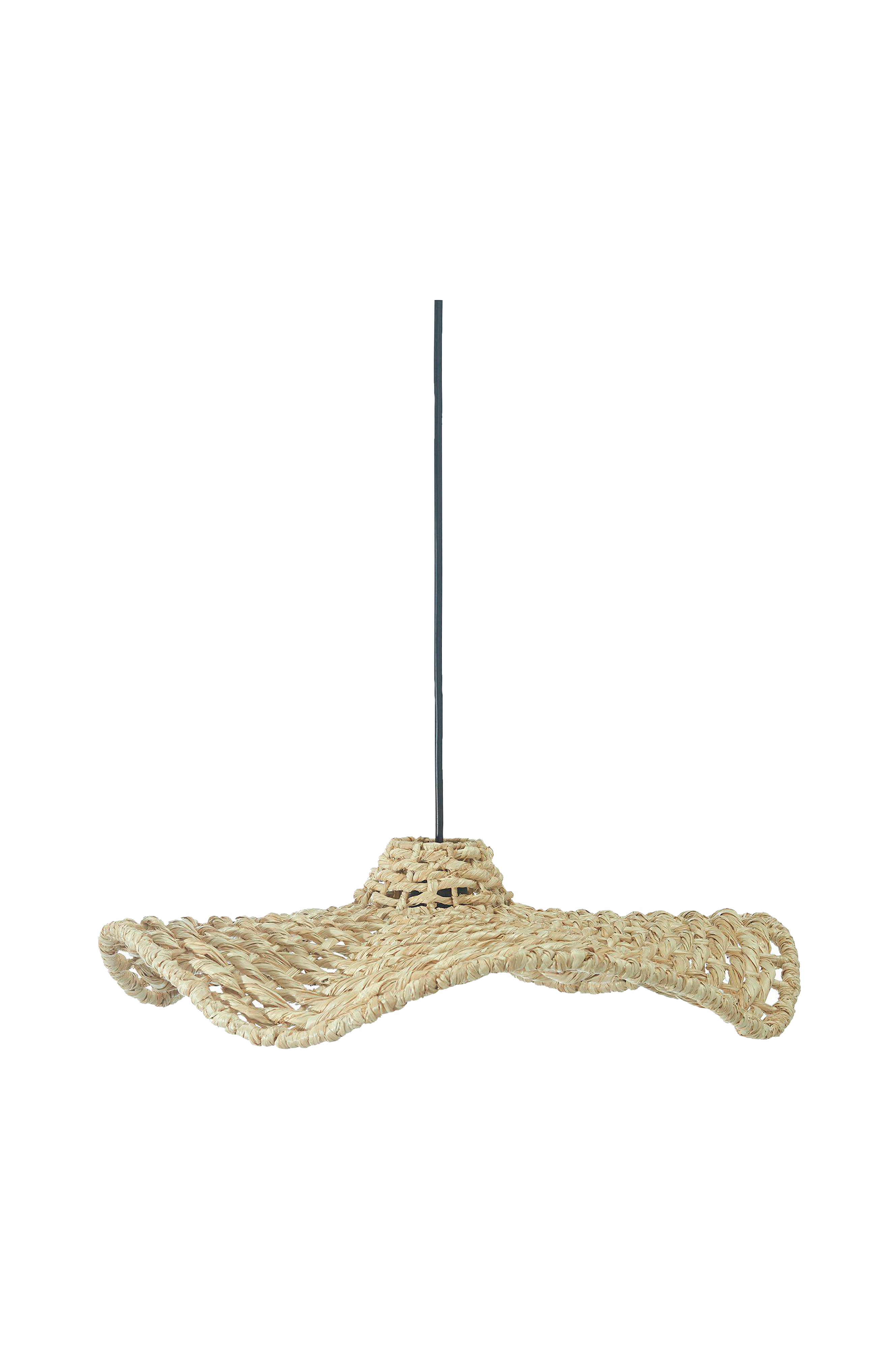 Tali loftlampe i håndflettede raffiablade. Raffia er en type palme med bløde og holdbare blade som er så smidige, at de kan flettes sammen til forskellige produkter, som f.eks. kurve, tæpper og lampeskærme. Da skærmen er lavet af naturmateriale, kan der være mindre størrelsesafvigelser, og farven kan ændre sig over tid. Diameter 46,5 cm, højde 12 cm. Sort loftophæng med baldakin til indendørs brug medfølger, og ledningen er 1,2 meter lang med en E27 fatning. Brug pære E27 maks. 40 W. Lyskilde og loftkontakt købes separat.