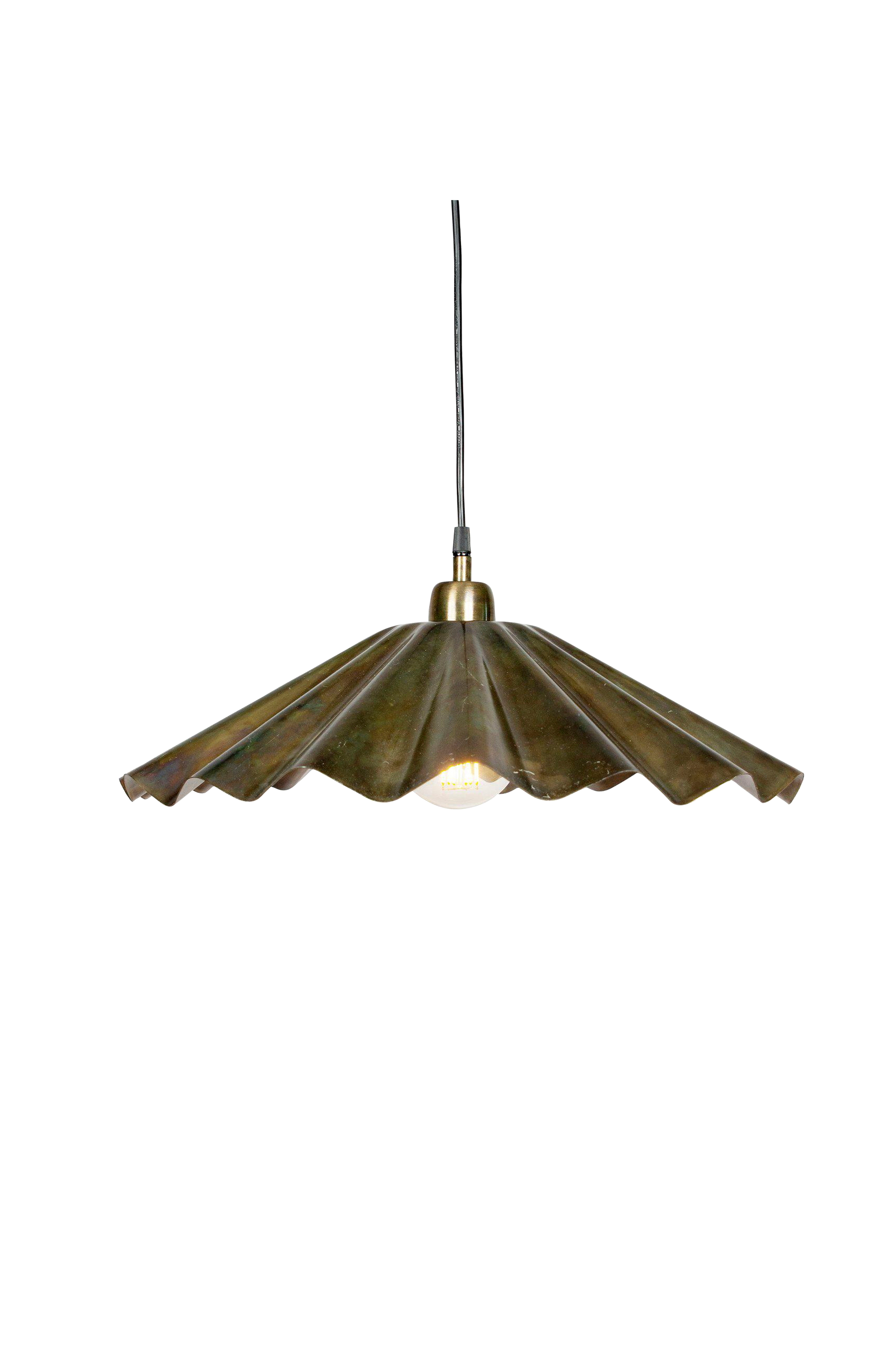 Pendellampe aira er en mindre pendellampe med organisk bølgeform i metal, hvor den rustikke stil er kombineret med et moderne design. Finishen er håndlavet og unik for hvert stykke. Højde 21 cm og diameter 49 cm. 1,6 m plastledningssæt med loftkop til krogophæng. E27-fatning. Max 25w. Ip20. Stik og lyskilde medfølger ikke.