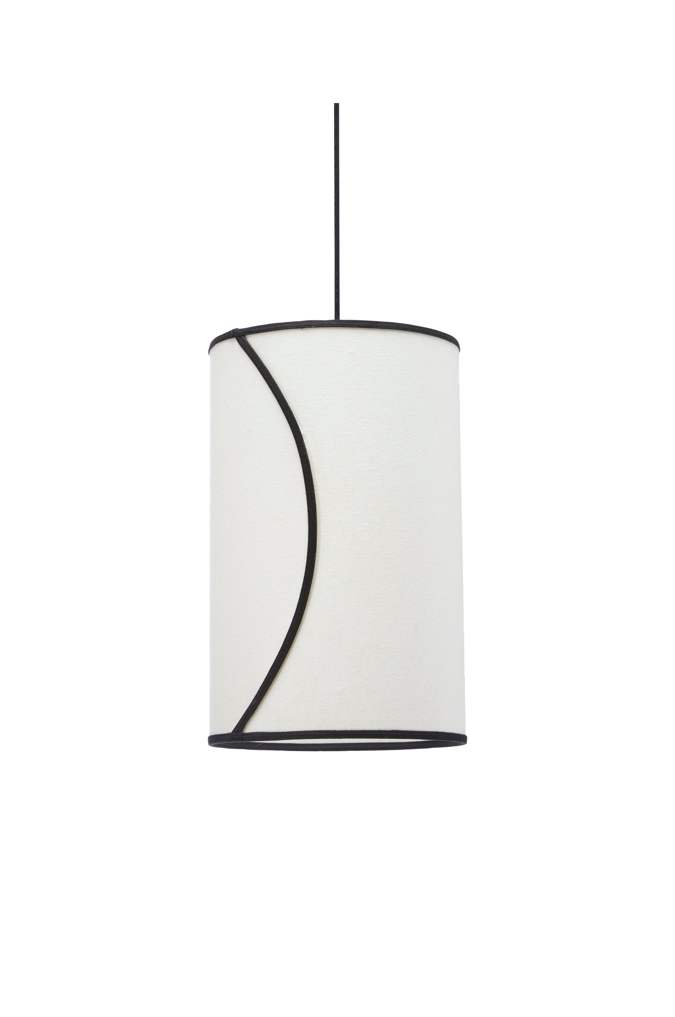 Pendelskærm ava. En cylinderformet pendelskærm i økologisk bomuldsstof. Når den er tændt, giver den et behageligt lys og er samtidig et blikfang. Diameter 25 cm, højde 40 cm. E27 topmontering. Kun lampeskærm, loftsophæng medfølger ikke. (Skærmen kan også bruges på en lampefod).
