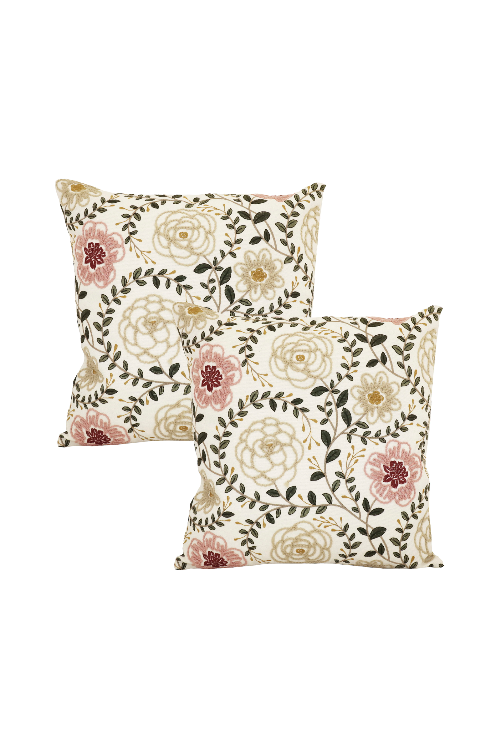 Pudebetræk med broderet mønster på forsiden, ensfarvet bagside og skjult lynlås i bunden, 2-pak.