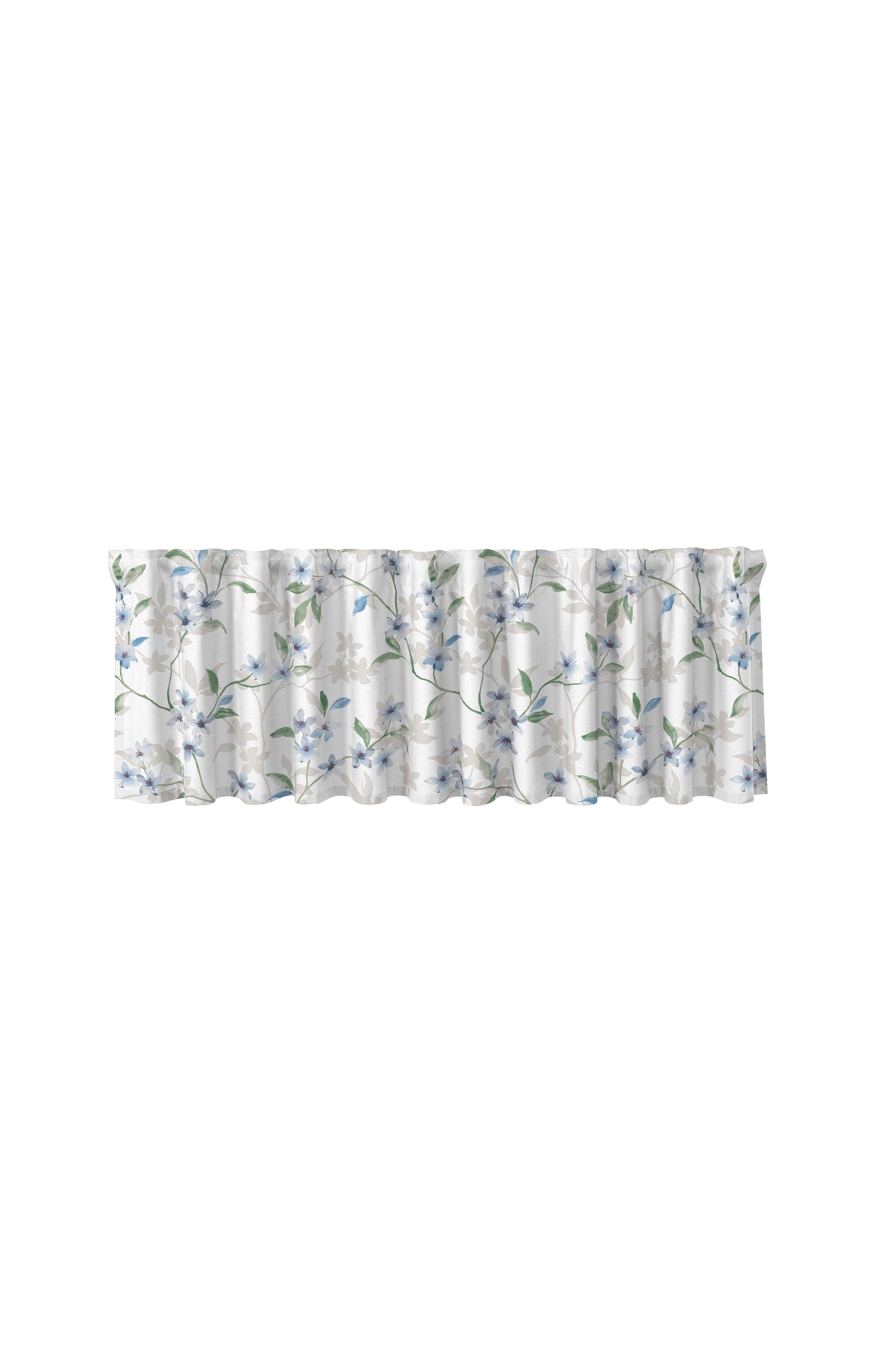 Smuk færdiglavet valance med flere hoveder. Trykt på tovejs slubstof for en smuk slubstruktur.