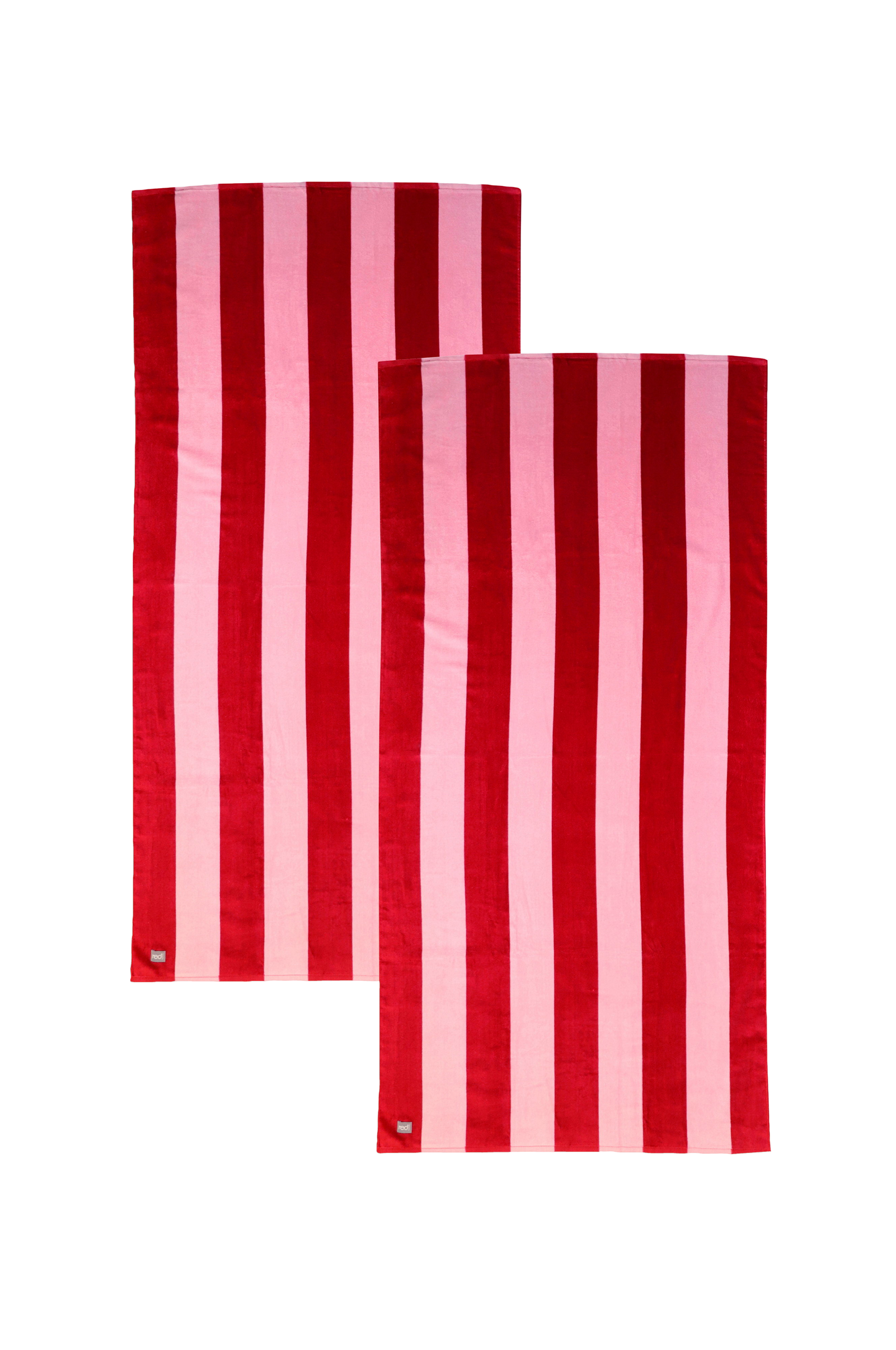Stribet velourstrandhåndklæde med en skøn farvekombination, 380 g/m², 2-pak.