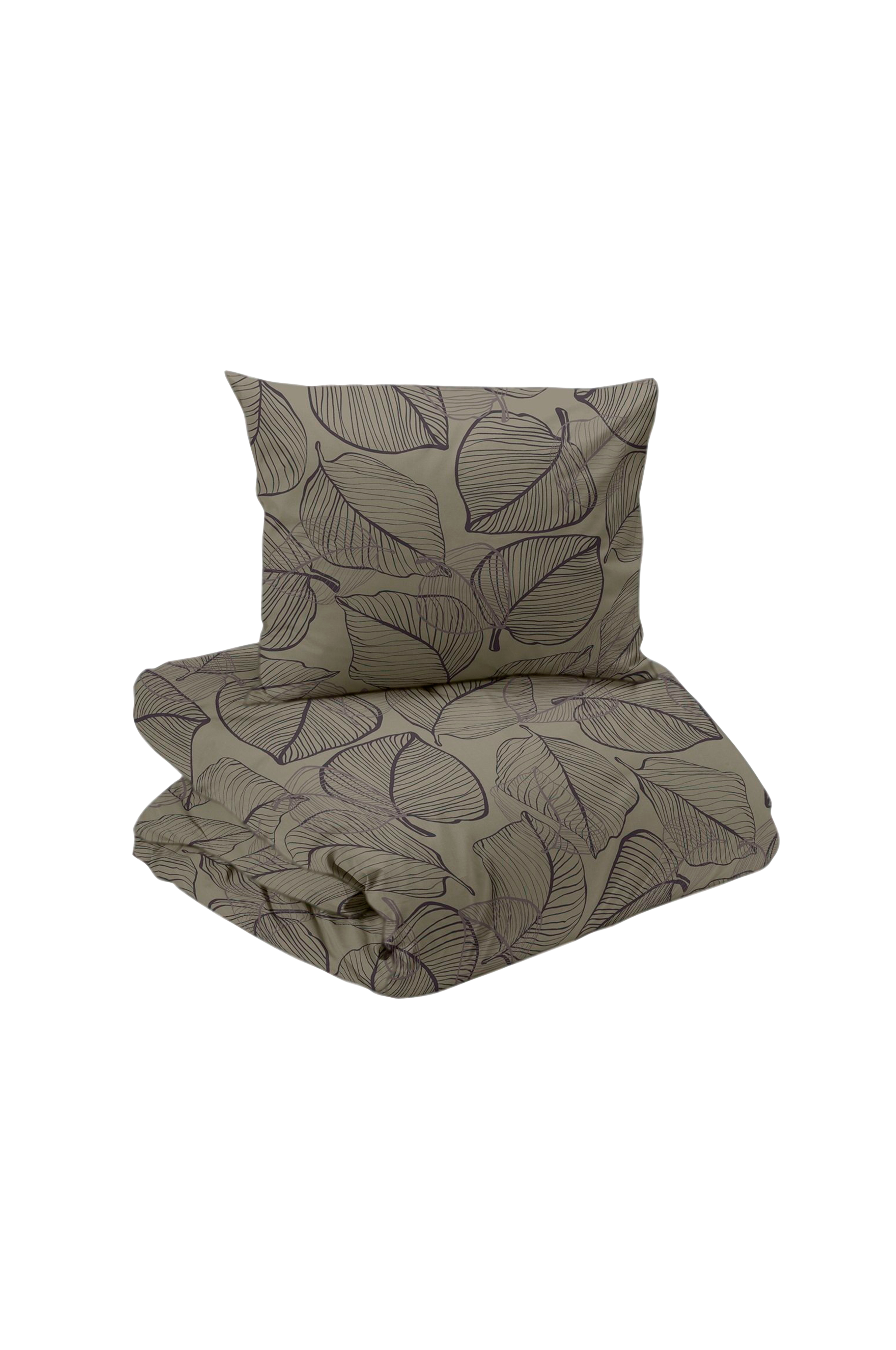 2-delt sengetøjssæt med bladmønster. Mønsteret er designet af en svensk designer. Trådantal 120.