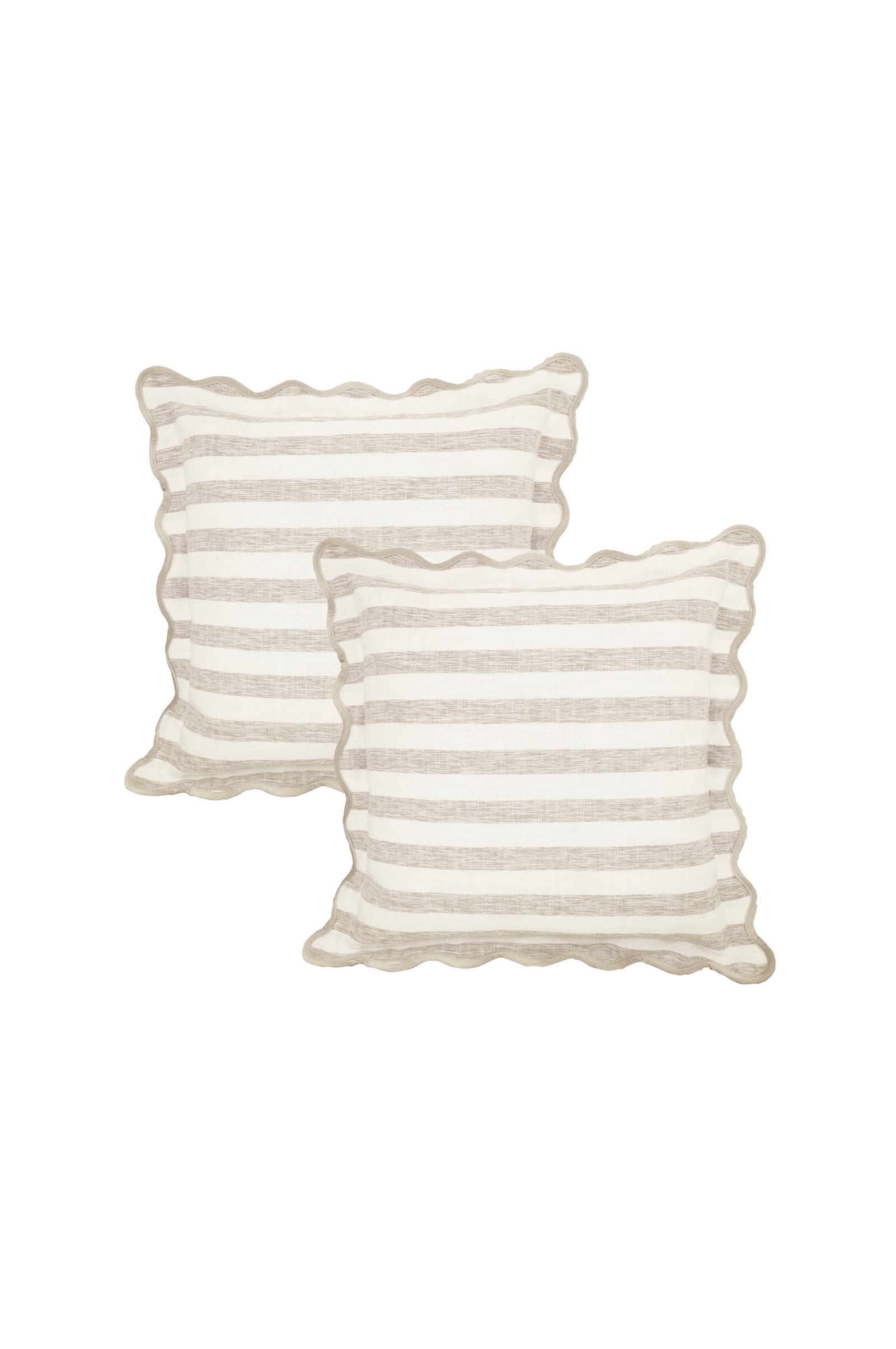 Stribet pudebetræk med 4 cm skråkant og farvematchende kant. Skjult lynlås bagpå, 2-pak.