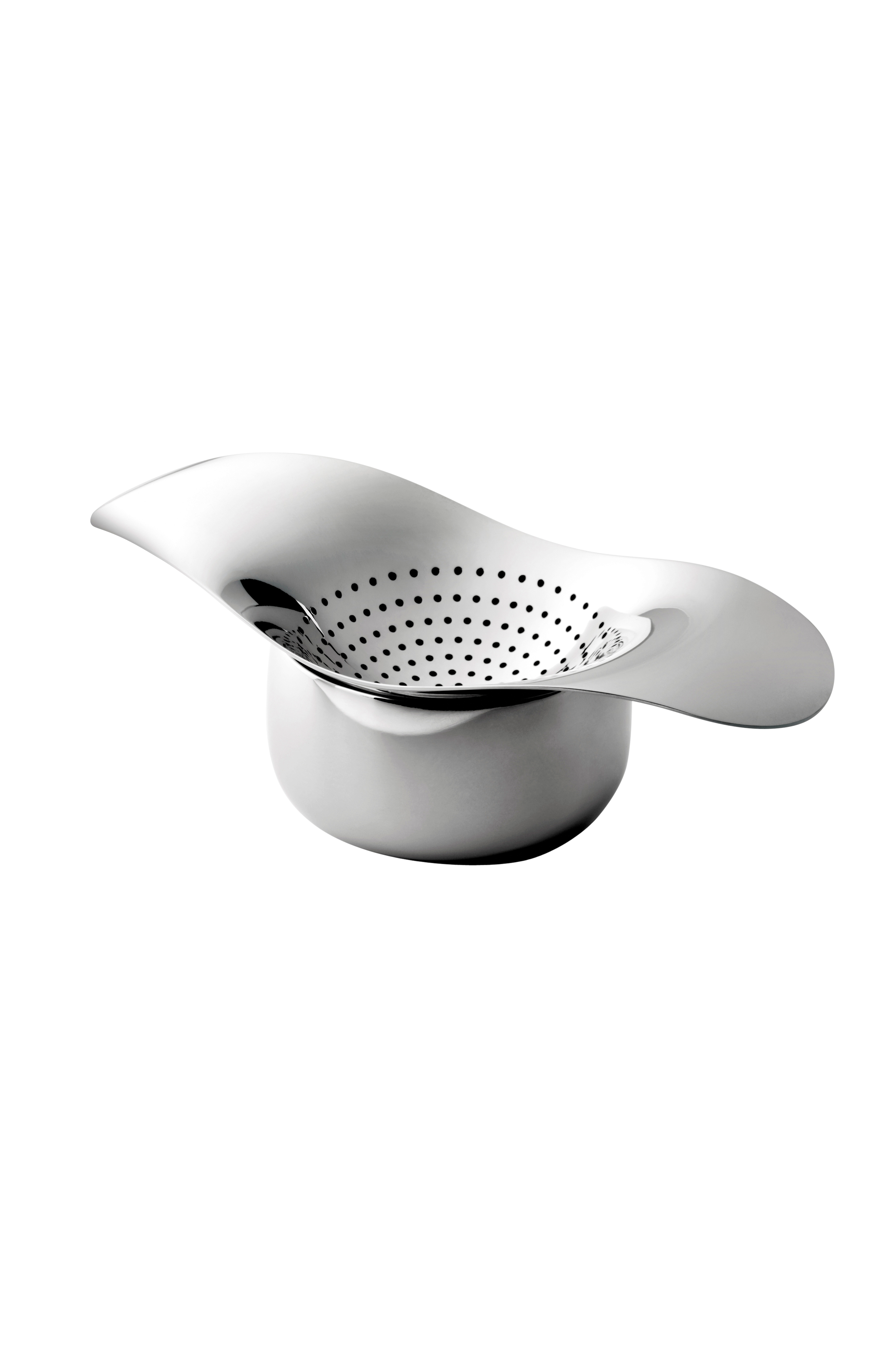 Med denne konturformede te-si med den tilhørende skål fra Robert Welch får du en elegant løsning til din løsblads-te. Du hænger tesien på koppen og lader din yndlingste trække til en behagelig styrke og smag. Beholderen sikrer, at du undgår grimme pletter på bordet. Tesien og skålen er lavet af det fineste 18/10 rustfrit stål med en spejlpoleret finish.