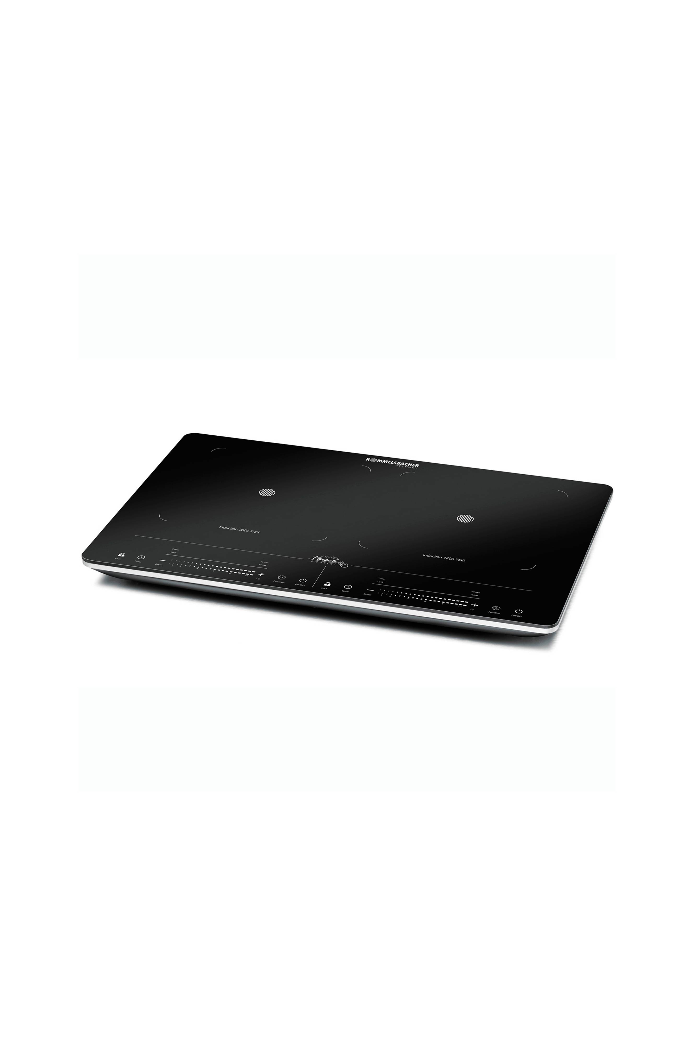 Induktionskogeplade - dobbelt.Denne dobbelte induktionskogeplade har et rent design og er fremstillet af materialer af høj kvalitet. Induktion er den moderne måde at lave mad på: effektiv og økonomisk. Temperaturen stiger meget hurtigt, fordi et elektromagnetisk felt opvarmer bunden af gryden direkte og ikke kogepladen. Madlavningen er hurtig som med gas og sikker som med elektricitet. Denne mobile dobbeltkogeplade af høj kvalitet er en perfekt tilføjelse som madlavningsflade i ethvert køkken og er også ideel til brug i sommerhuse og på kontorer.