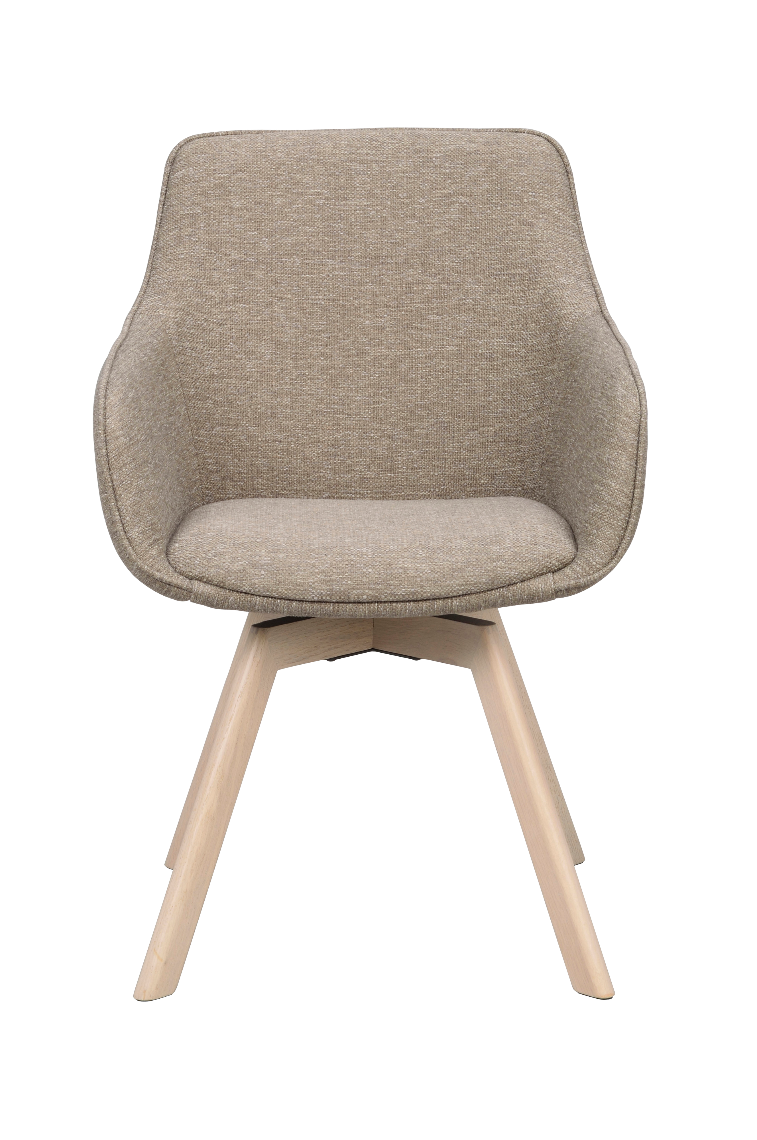 Alison-stolen med armlæn i lys beige stof, der minder meget om den populære Alison-stol, har en 360 graders drejelig base. Det konturerede, polstrede sæde og de høje armlæn giver komfort og en behagelig siddeoplevelse. Alison-stolen med armlæn og træfod gør det nemt at matche med andre træmøbler i dit hjem. Træet i sædet og den lakerede brune eg-fod består af 100 % FSC®-certificeret træ. Sælges kun i 2-pak.