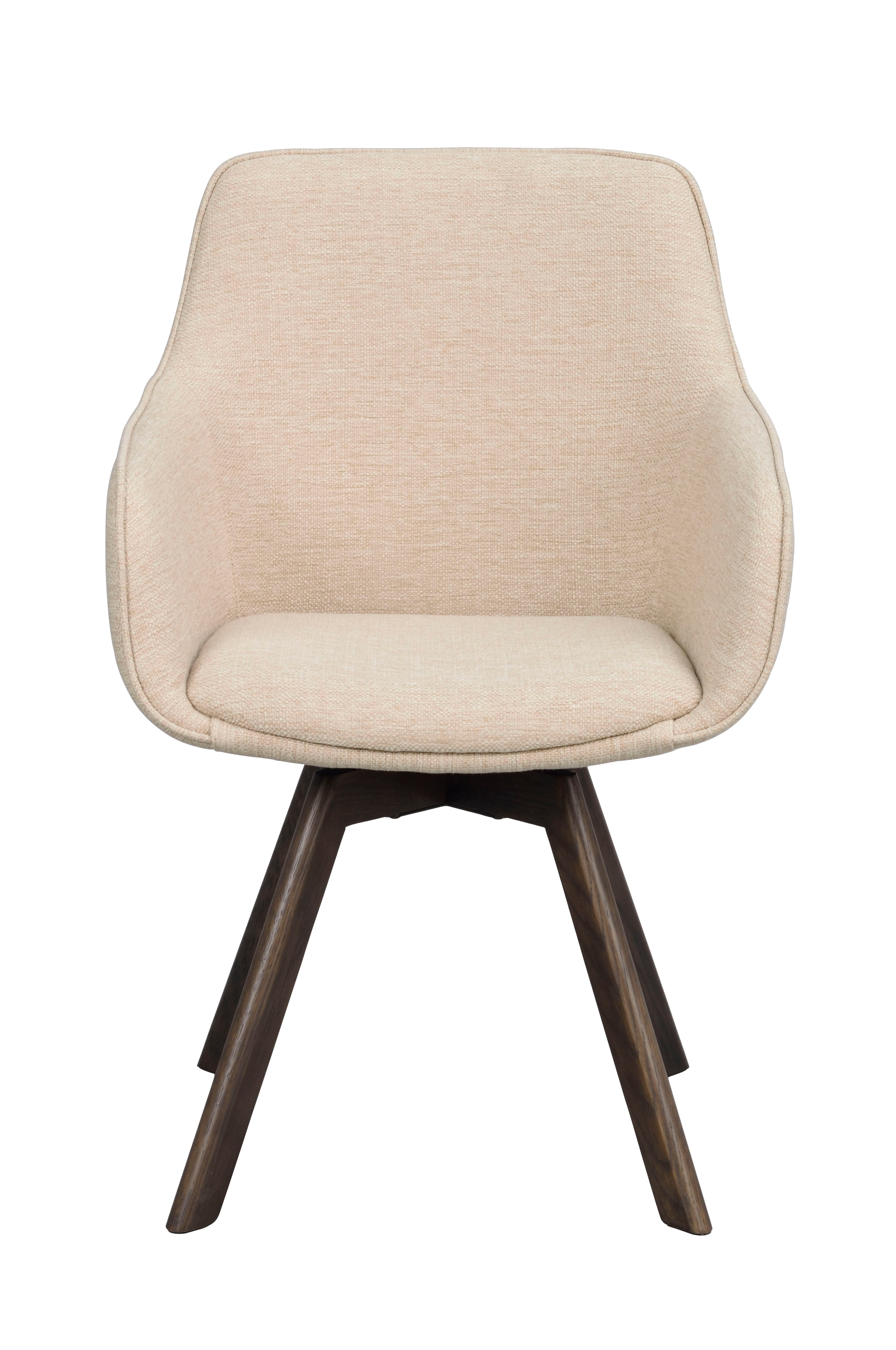 Alison-stolen med armlæn i lys beige stof, der minder meget om den populære Alison-stol, har en 360 graders drejelig base. Det konturerede, polstrede sæde og de høje armlæn giver komfort og en behagelig siddeoplevelse. Alison-stolen med armlæn og træfod gør det nemt at matche med andre træmøbler i dit hjem. Træet i sædet og den lakerede brune eg-fod består af 100 % FSC®-certificeret træ. Sælges kun i 2-pak.