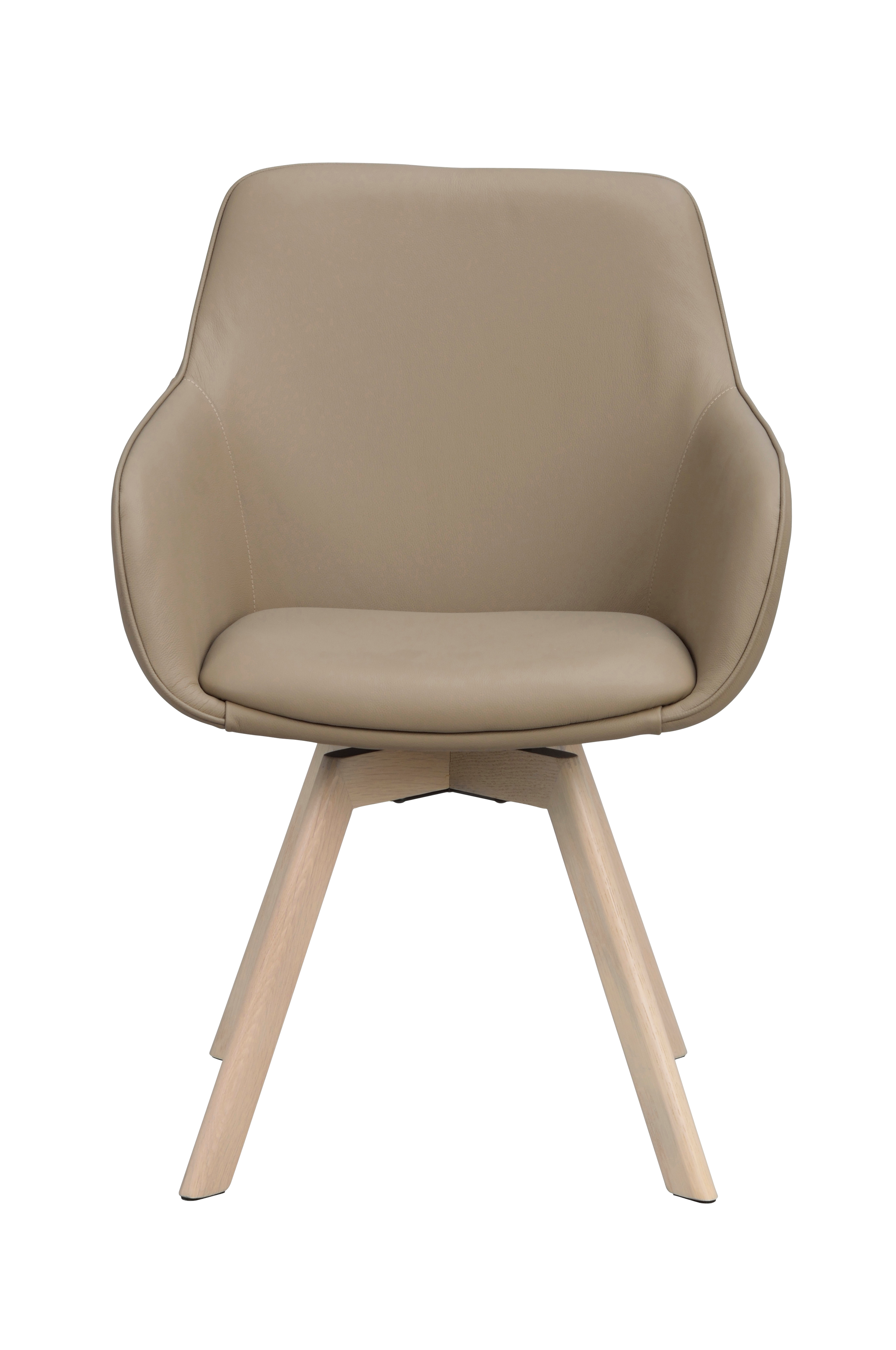 Alison-stolen med armlæn i beige læder har, ligesom den populære Alison-stol, en 360 graders drejelig base. Det buede, polstrede sæde og de høje armlæn gør stolen behagelig og hyggelig at sidde i. Alison-stolen med armlæn og træbase gør det nemt at matche den med spisebordet og andre træmøbler i hjemmet. Træet i sædet og den lakerede brune eg-fod er fremstillet af 100 % FSC®-certificeret træ. Sælges kun i 2-pak.