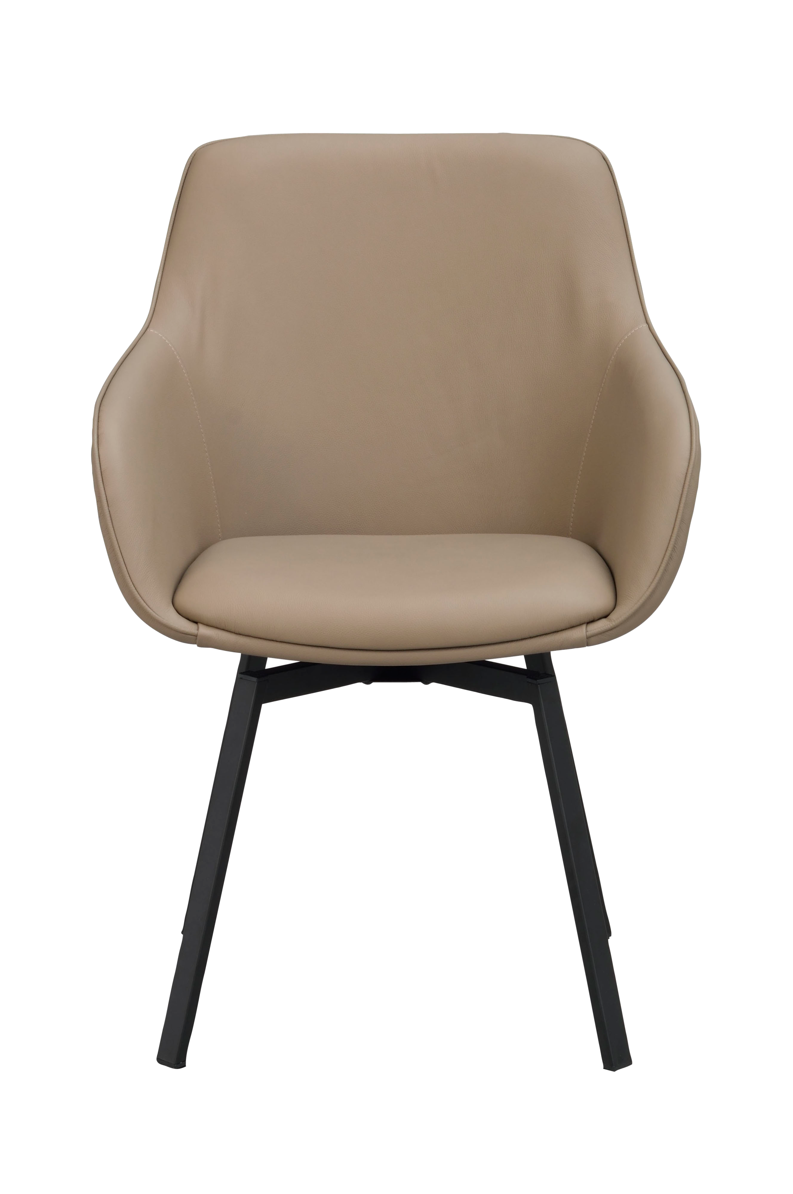 Alison-stolen med armlæn i beige læder har, ligesom den populære Alison-stol, en 360 graders drejefod. Det buede, polstrede sæde og de høje armlæn gør stolen behagelig og hyggelig at sidde i. Alison-stolen med armlæn og sort metalfod gør den nem at matche med andre møbler i hjemmet. Træet i sædet er lavet af 100 % FSC®-certificeret træ. Sælges kun i 2-pak.