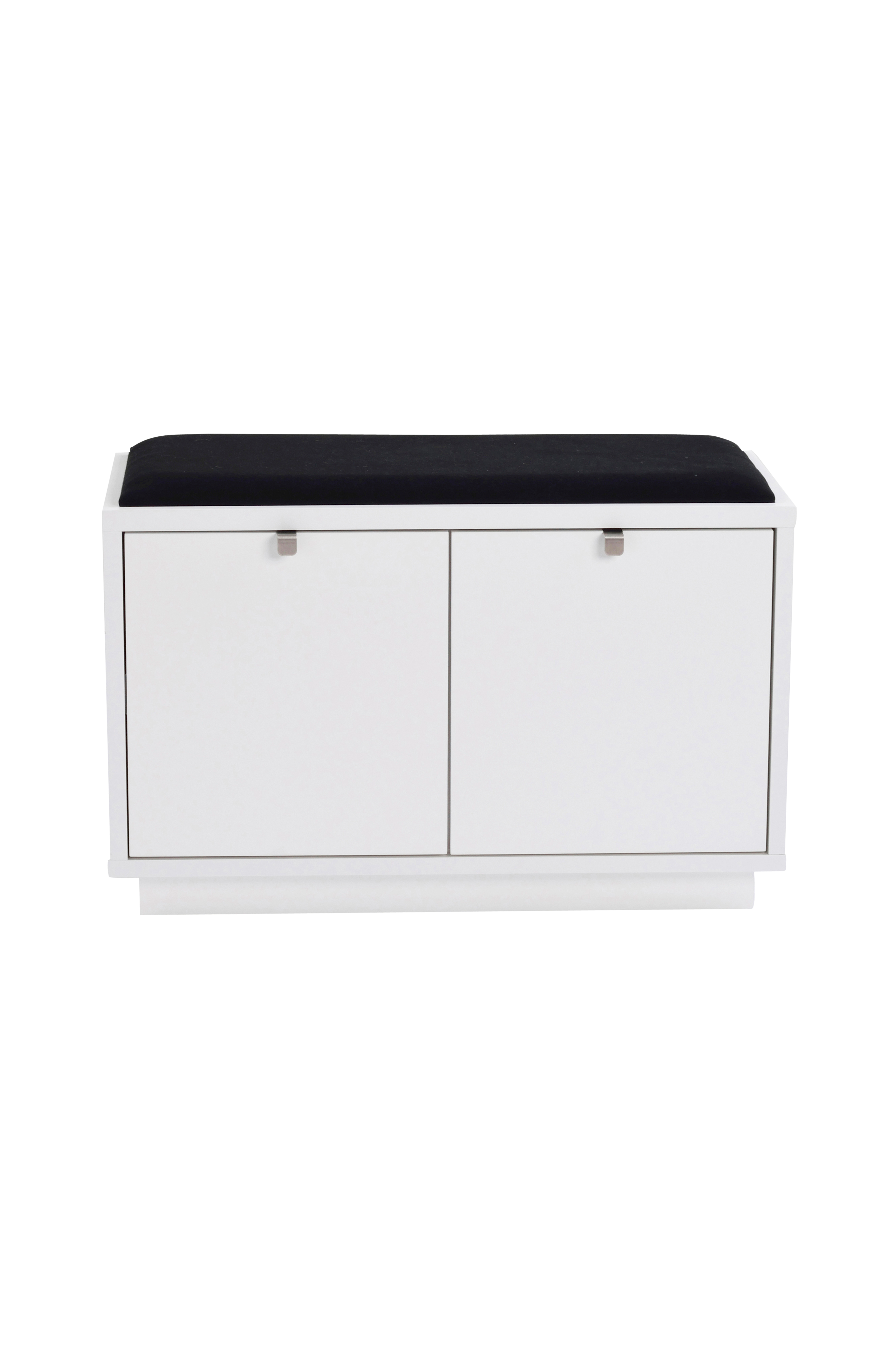 Confetti bænk. Bredde 70 cm, højde 45 cm, dybde 35 cm. Praktisk og stilren bænk med to rummelige skuffer som tager sig af opbevaringen. En del af vores entréserie Confetti.