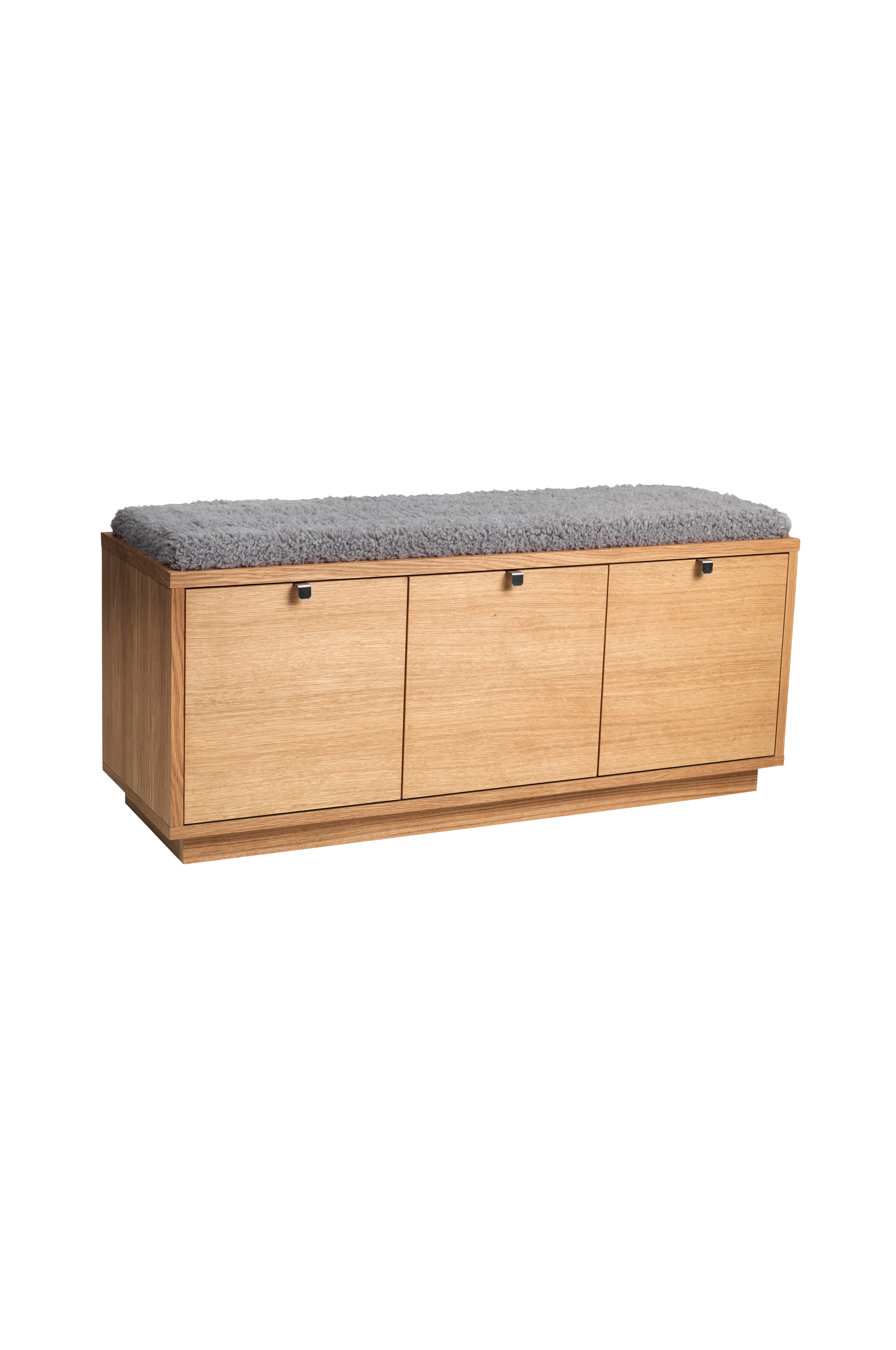 Confetti bænk. Praktisk og stilren bænk med to rummelige skuffer som tager sig af opbevaringen. Bredde 106 cm, højde 45 cm, dybde 35 cm. En del af vores entréserie Confetti.