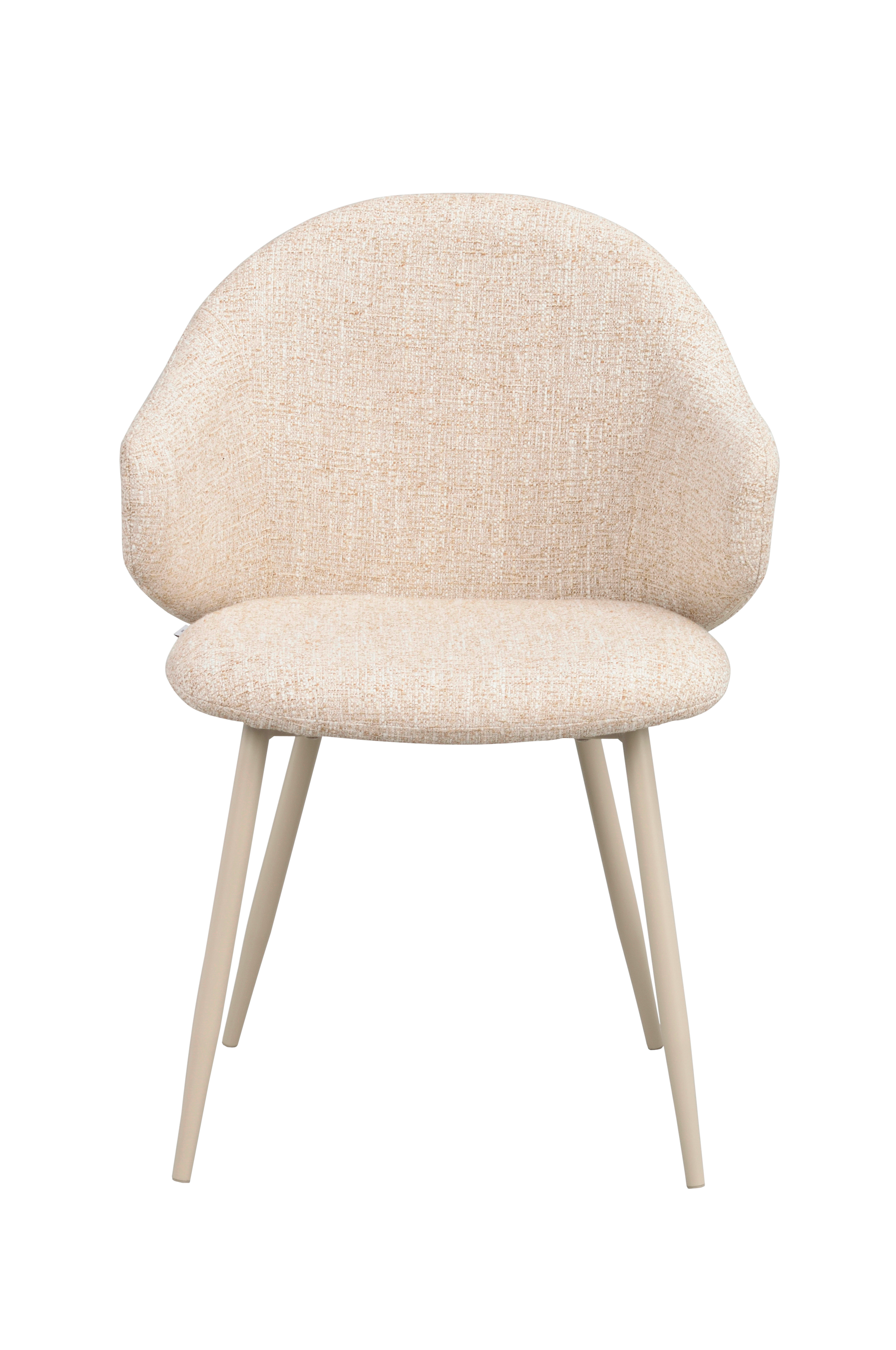 Drake er en elegant og alsidig lænestol, der kombinerer komfort med karakter. Dens slanke silhuet gør, at den passer perfekt ind i mange forskellige rum, fra spisepladser til arbejdsområder eller loungemiljøer. Det beige metalstel giver et moderne touch, mens det retroinspirerede stof giver en varm 1970'er-flair og en følelse af personlighed. Både sæde og ryglæn er blødt polstret for at give god komfort, og armlænene giver ekstra støtte uden at få stolen til at føles klodset eller tung. Materialebeskrivelse Stålstel med pulverlakering i sandstruktur, sæde og ryglæn i bøjet krydsfiner, polstret med polyeterfoam og stof i 100 % polyester.