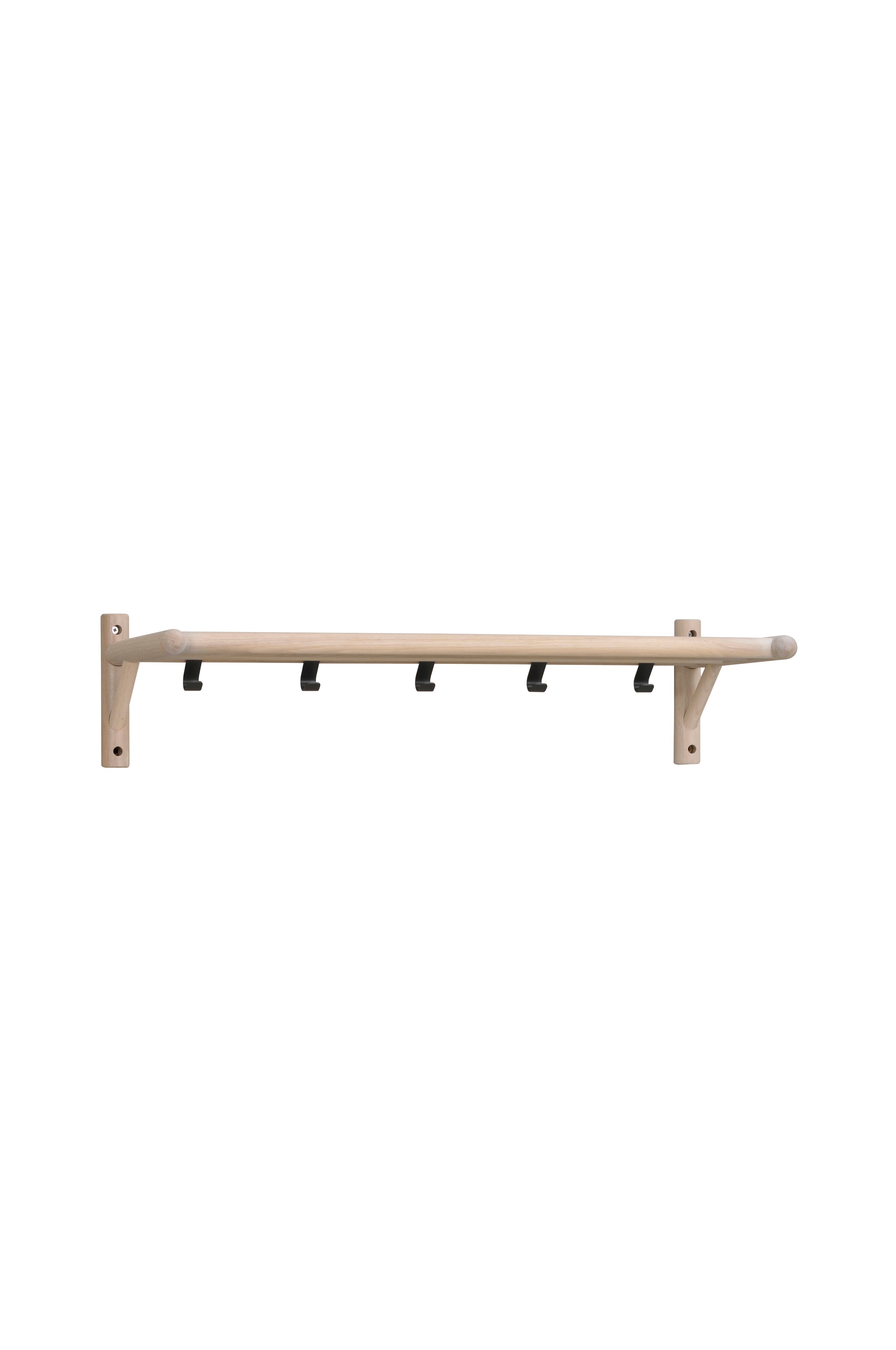 Milford hattehylde i eg med metalkroge. En trendy hattehylde fra vores Milford-serie. Bredde 80 cm, højde 19 cm, dybde 33 cm. Leveres usamlet.