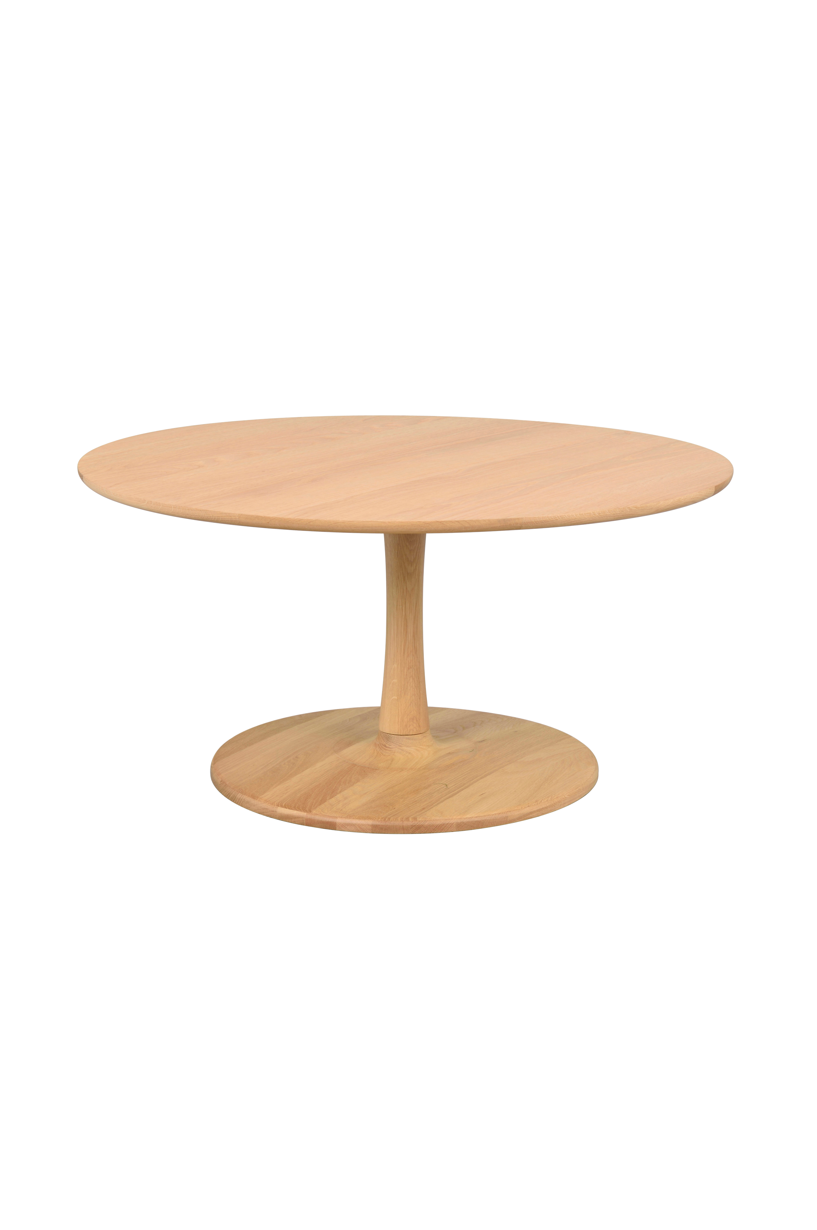 Hobart sofabord ø90 i eg er et luftigt og stilrent piedestalbord i skandinavisk design. Den tynde bordplade med et smukt egetræsmønster møder det drejede ben i samme træsort. Det er et sofabord med organiske former, der skaber bløde, dejlige linjer. Kombiner det gerne med sofabordet hobart, ø60 cm, og stil dem sammen som indskudsborde - hvorfor ikke endda tre borde, hvilket skaber en dejlig dynamisk følelse. Fsc®-certificeret produkt, hvilket betyder, at det indeholder træ, der tager hensyn til mennesker og miljø.