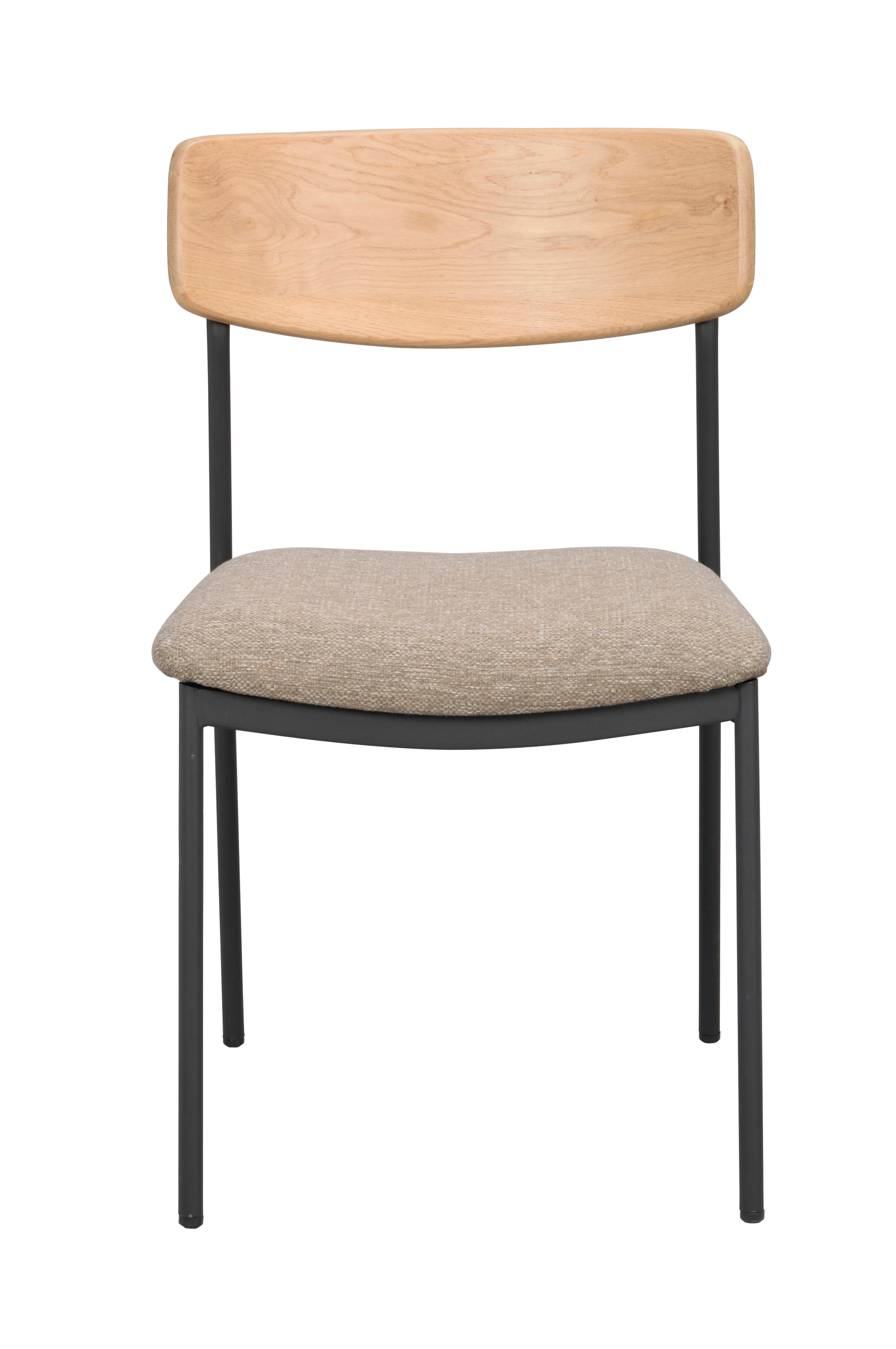 Maymont-stolen er stabelbar. Perfekt til at have det ønskede antal omkring spisebordet, men også til at have et par ekstra stablet oven på hinanden, så de kan bruges til lejligheder med flere gæster omkring spisebordet. Ben i pulverlakeret metal kombineret med et formet ryglæn i massiv eg og et polstret sæde i stof. En stol med rene linjer og god siddekomfort. Passer ind i de fleste hjem og er nem at matche med forskellige spiseborde. Fsc®-certificeret.