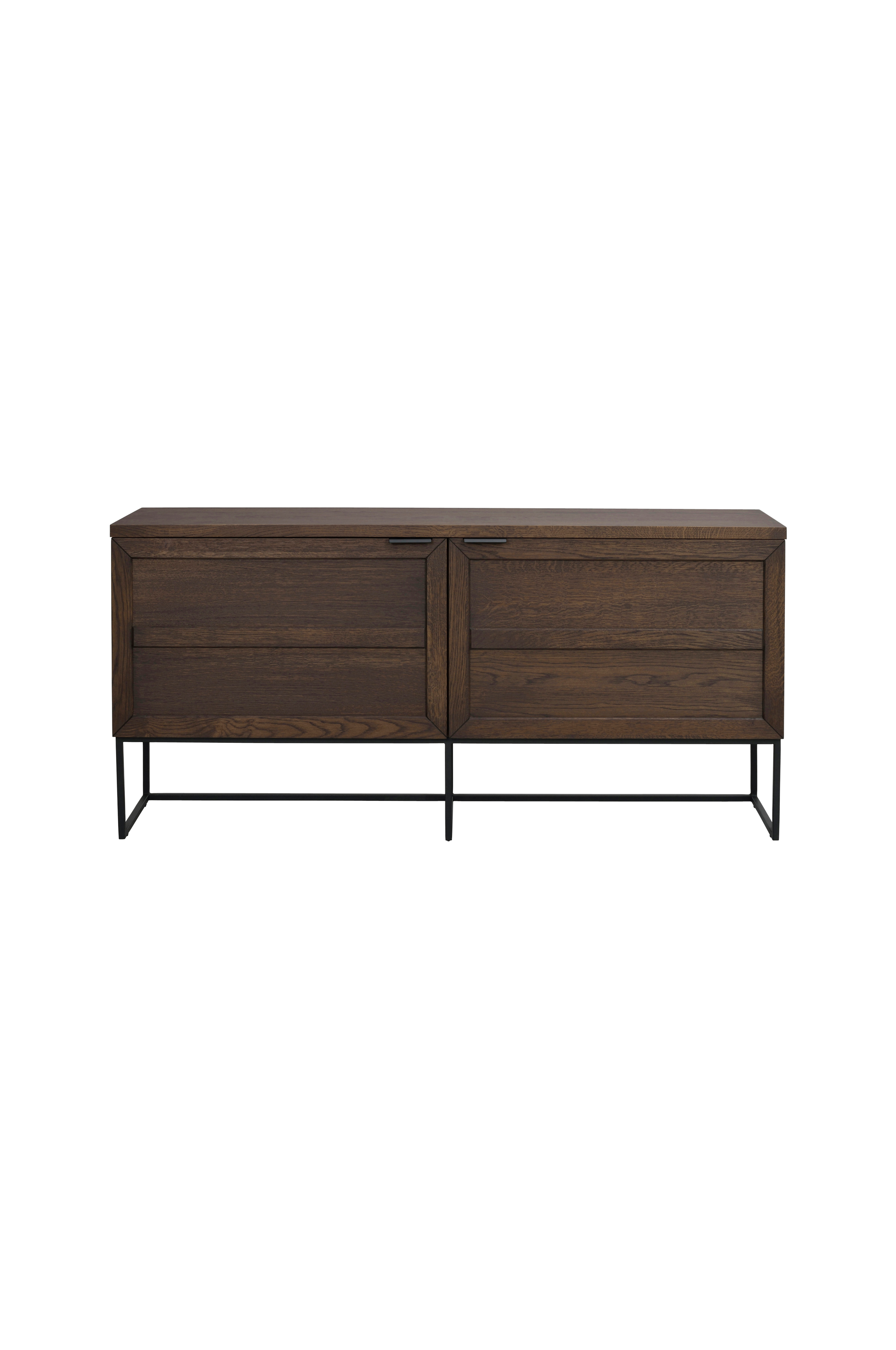 Everett skænk i eg med ben i pulverlakeret sort metal. En stilfuld og smuk skænk, som indgår i vores everett-serie.