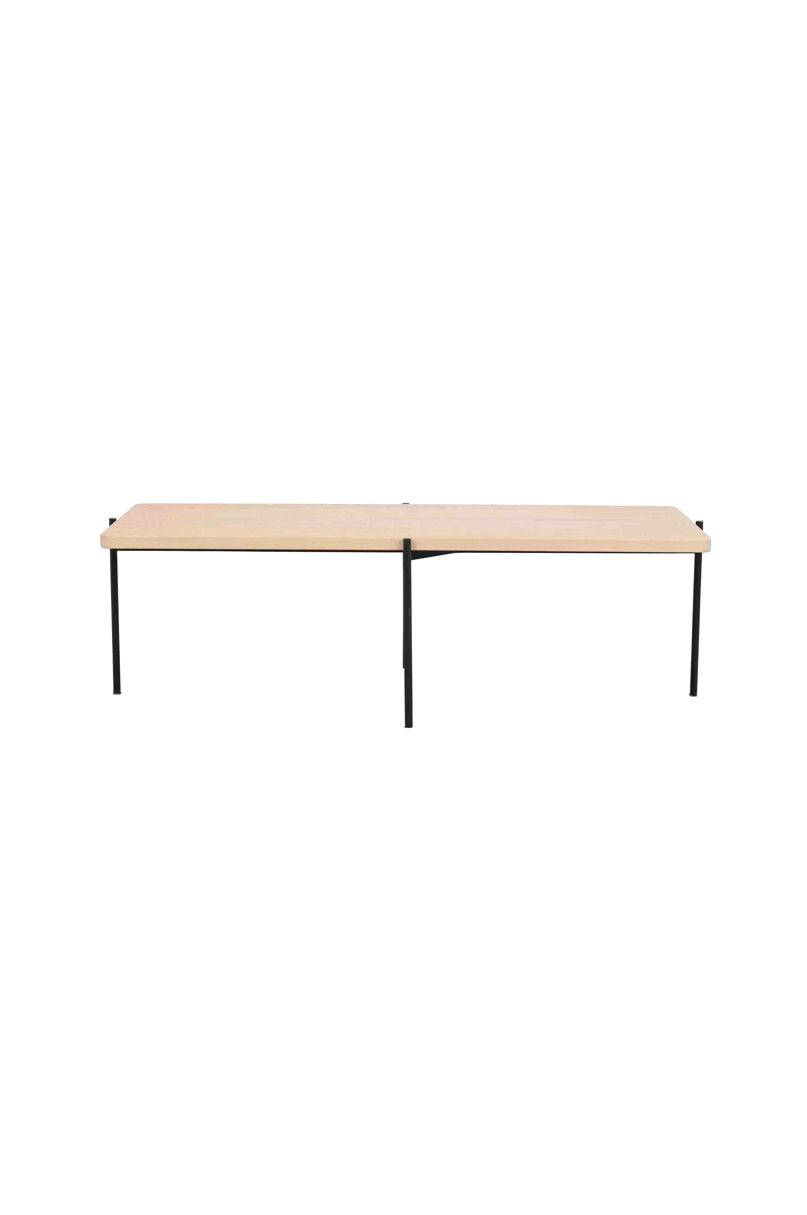 Et elegant sofabord med bordplade i massiv olieret ask og med metalben i rund profil. Shelton er et moderne rektangulært sofabord som passer godt til Shelton sofa.
