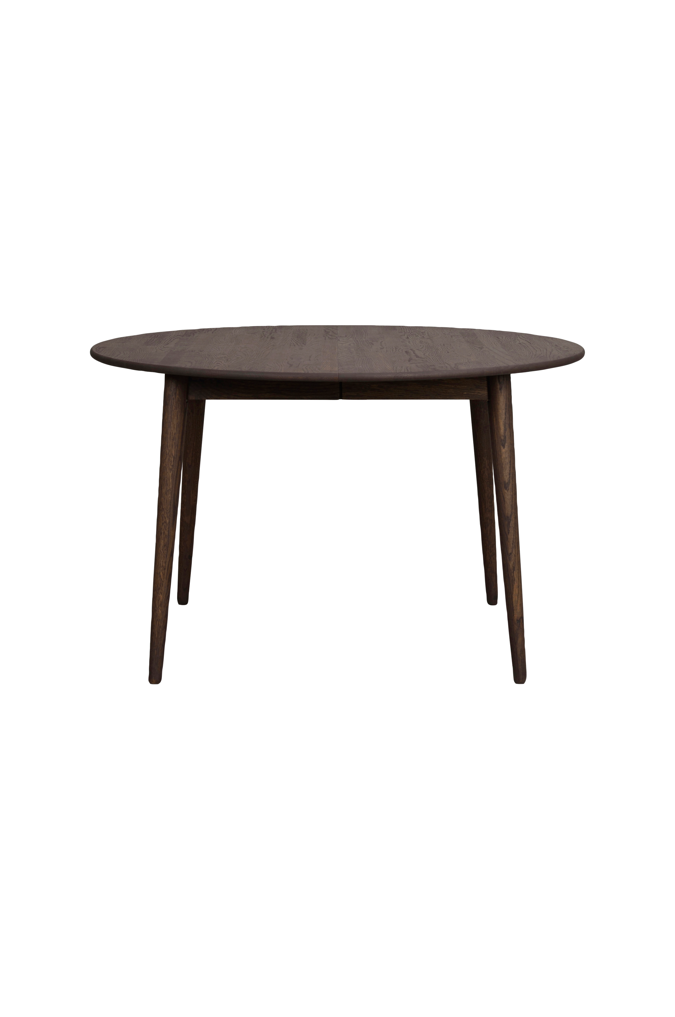 Tyler spisebord, ø120 cm, er et tidløst rundt bord lavet af massivt fsc®-certificeret egetræ i skandinavisk design. Der medfølger en tillægsplade, når du køber bordet, og du kan tilkøbe en tillægsplade på 45 cm, så det bliver et spisebord på hele 210 cm. Fås i flere størrelser.