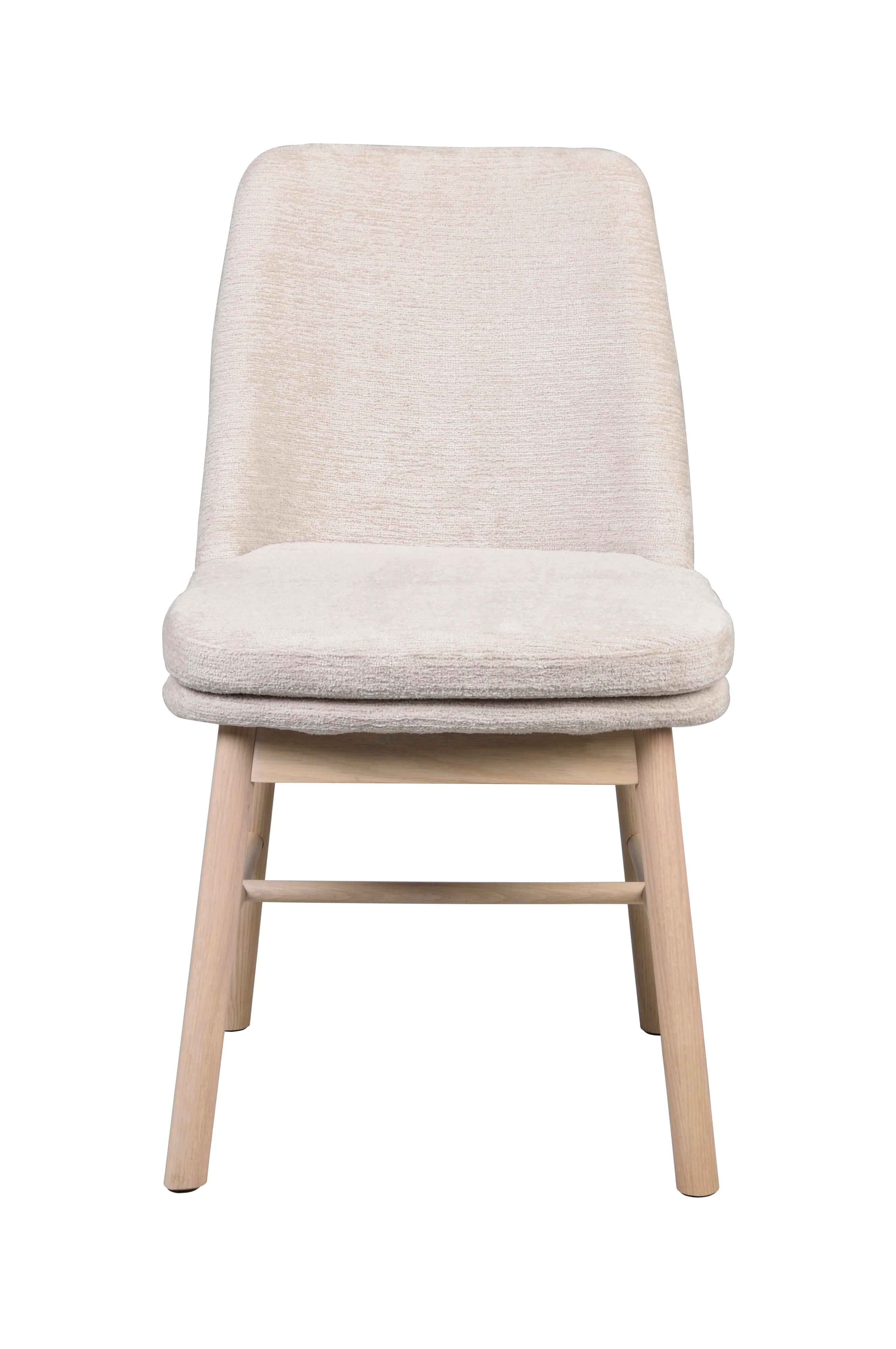 Amesbury-stolen med ben af massivt træ i eg bringer naturlig elegance til dit hjem. Stolen er betrukket med stof, som har en fin struktur og er utroligt blødt, samtidig med at det er meget slidstærkt. Takket være den tykke hynde, som også er aftagelig, kan du sidde behageligt under lange middage og nyde hvert øjeblik. Fås også med ben i lakeret og hvidkalket eg. Sælges kun i en 2-pak.