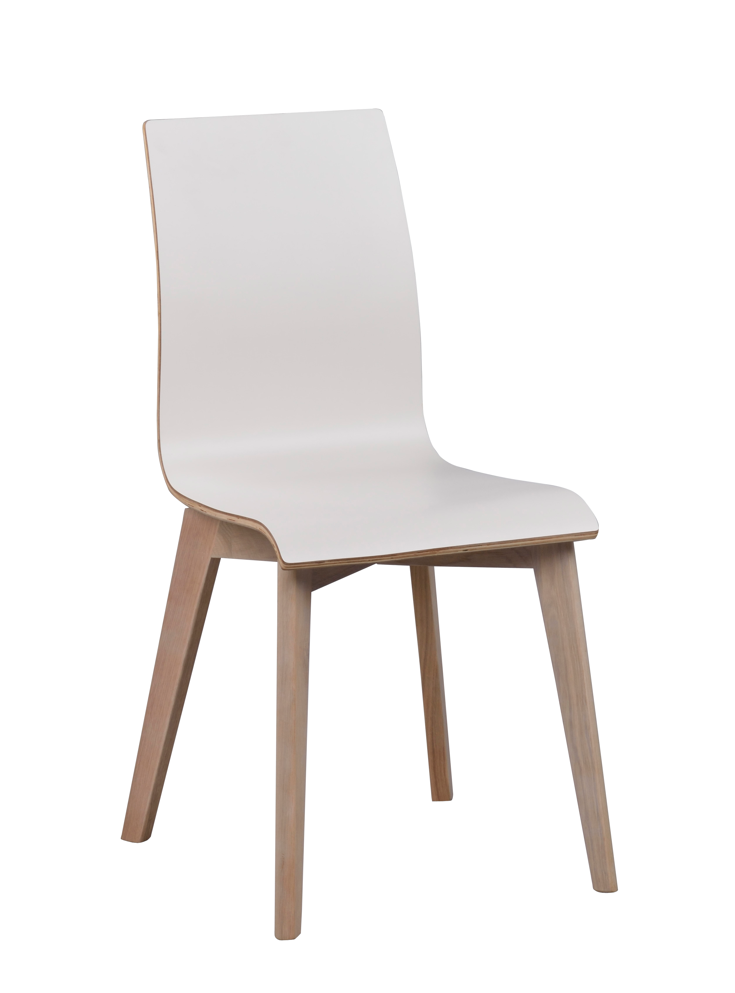 Elegant og moderne stol, som er let at få til at passe ind. Sæde i laminat og ben i egetræ. Skøn at sidde i og fylder ikke ret meget. Bredde 48 cm, dybde 50 cm og højde 89 cm. Leveres usamlet.