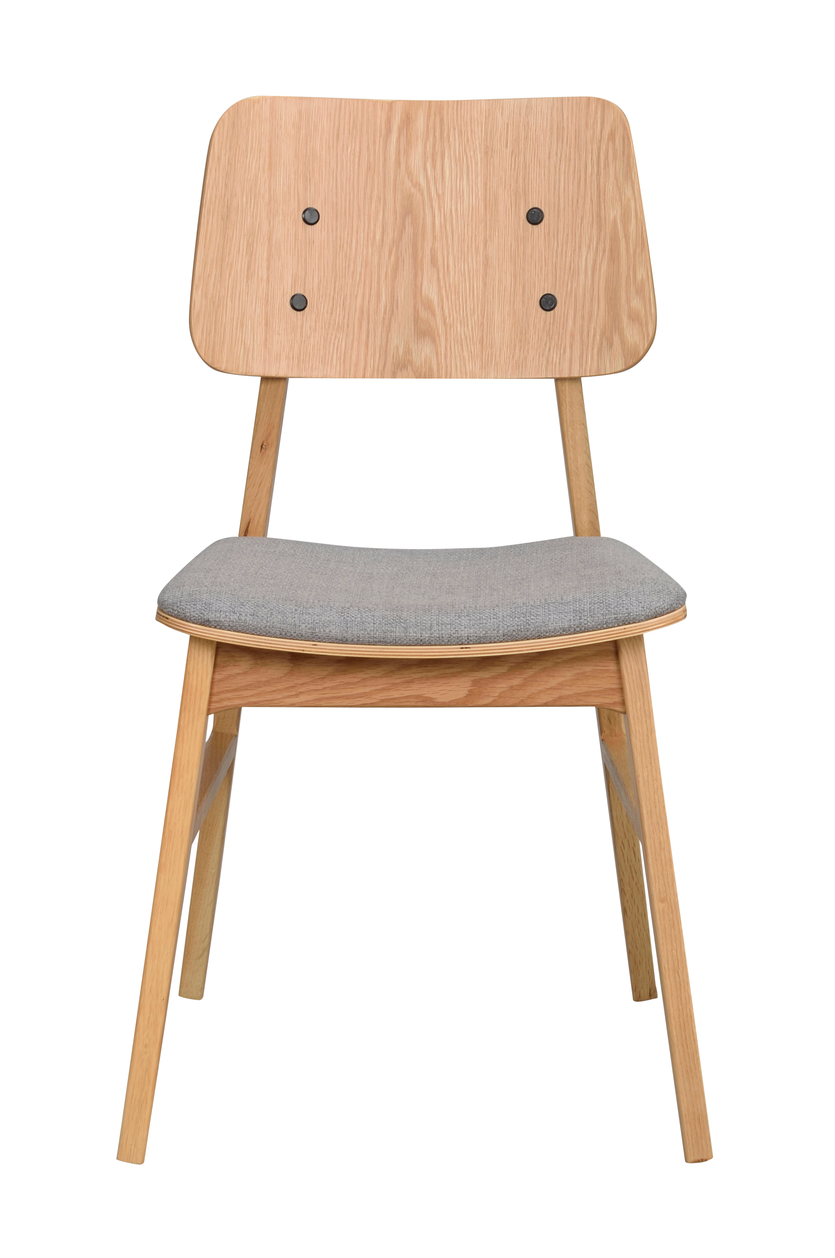 Nagano stol i massiv eg og sæde i stof. Stilren, komfortabel og stabil stol med fine forarbejdede detaljer. Bredde 44 cm, dybde 51 cm, siddehøjde 46 cm, totalhøjde 85 cm. Leveres usamlet.