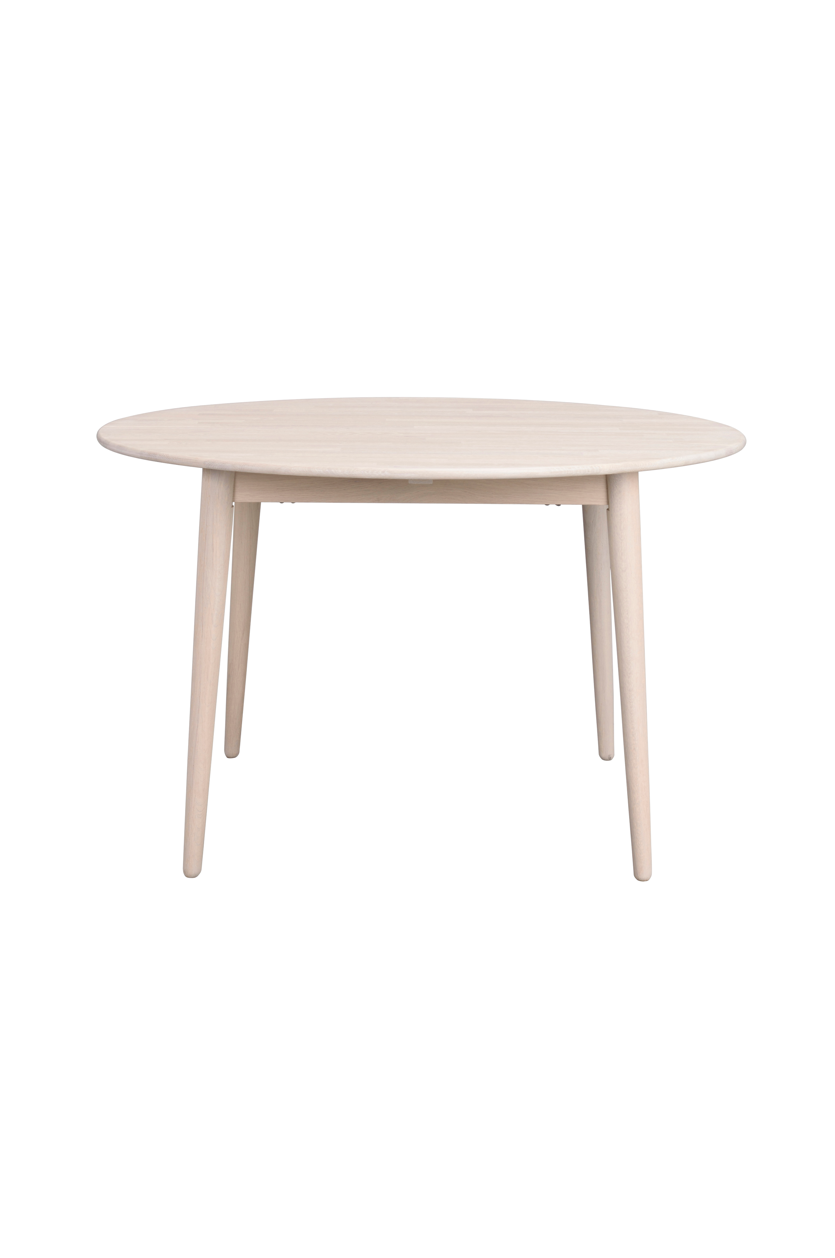 Tyler-spisebordet ø120 cm er et rundt bord i skandinavisk design, fremstillet i Europa. Der følger en tillægsplade med, når du køber bordet, og en ekstra tillægsplade på 45 cm kan købes separat og forlænge bordet op til 210 cm.