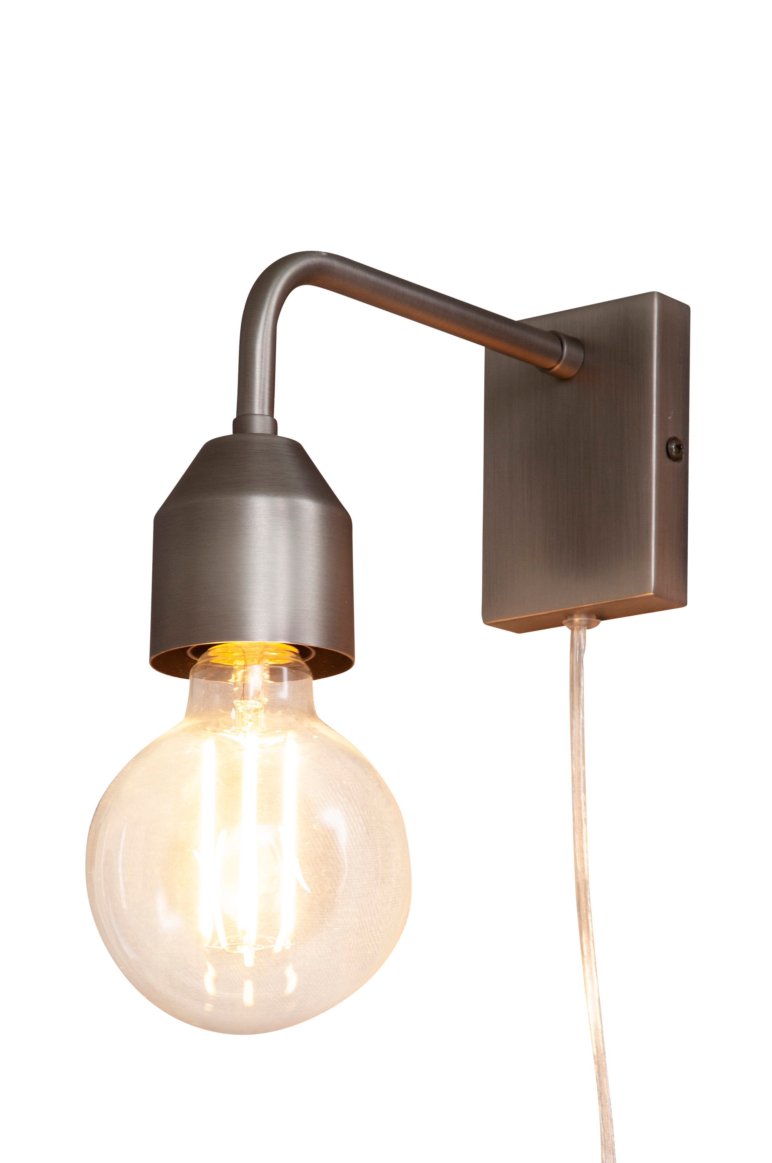 FLYNN metalvæglampe og afbryder på ledning. Vi anbefaler en stor dekorativ glødepære med E27-fatning.
