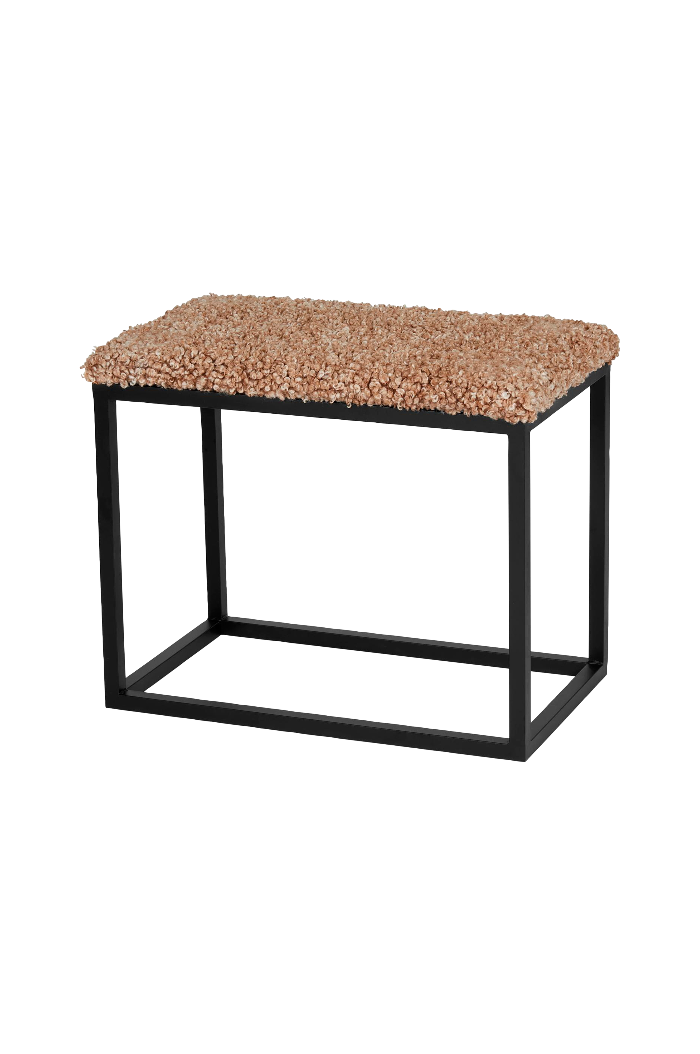 Bænk i klassisk skandinavisk design. Hynde i flot imiteret fåreskind på et understel i stål. Brug den som en ekstra siddeplads eller som en fin indretningsdetalje.