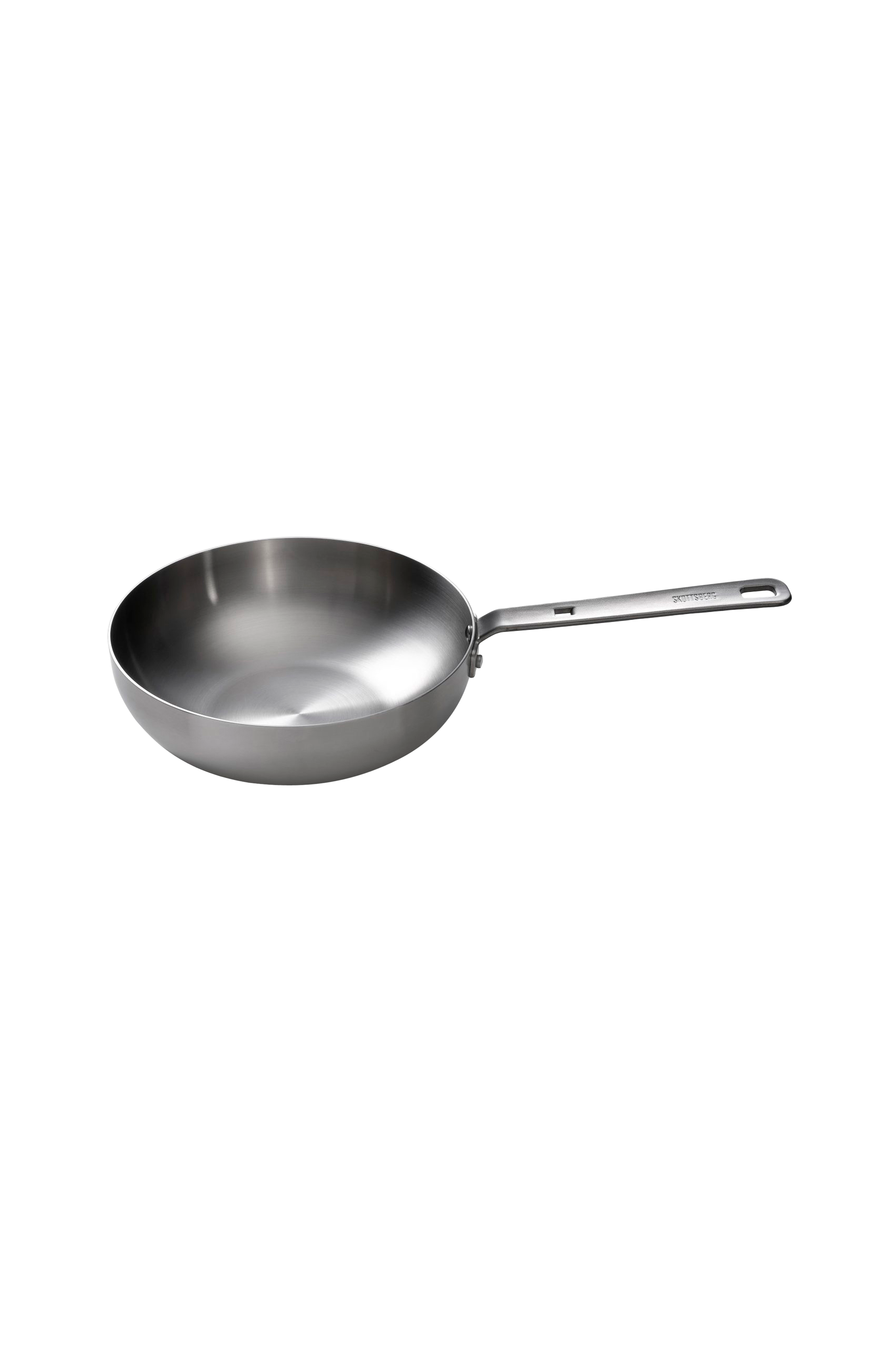 Skottsberg wokpande i rustfrit stål er værdsat for en række særlige egenskaber. Denne stegepande har en speciel tre-lags bund, hvilket betyder, at pandens bund består af 3 lag: 18/10 rustfrit stål, aluminium og magnetisk rustfrit stål. Rustfrit stål bruges fordi det er holdbart og let at vedligeholde og rengøre. Aluminiumkernen, beklædt med rustfrit stål, sikrer, at du tilbereder dine ingredienser jævnt. Aluminiumslaget fortsætter ind i siderne af panden, hvilket sikrer, at panden varmes jævnt og hurtigt op til toppen af kanten. Risikoen for fastbrænding er stærkt reduceret, og panderne er derfor meget energieffektive. Takket være det magnetiske ydre i rustfrit stål er wokpanden velegnet til induktion og perfekt til brug på alle andre varmekilder.