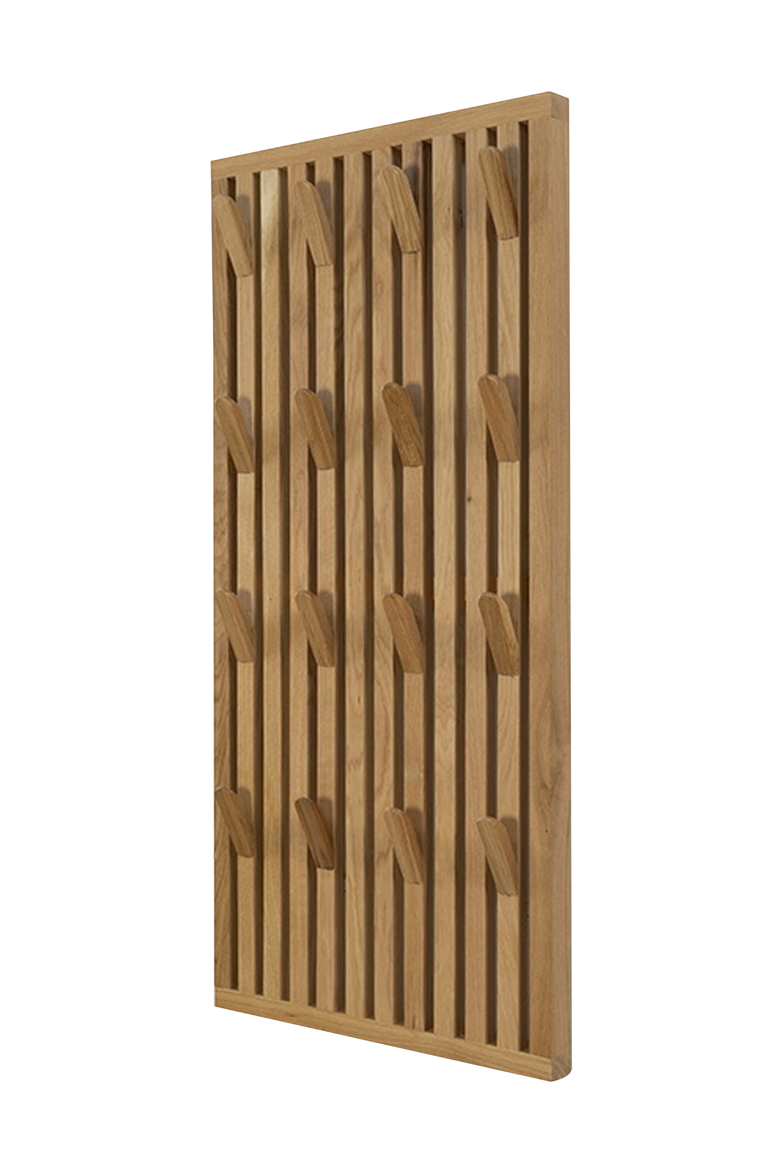 Den store knagerække Parco fra spinder x Eva Van De Ven-kollektionen er et eksklusivt design af Eva Van De Ven, som er kendt fra den hollandske tv-serie Vtwonen. Parco i eg er alsidig og funktionel. Ideel til dit køkken, soveværelse, badeværelse eller gang. Til mindre rum er der Parco Small, som er praktisk til nøgler, smykker eller endda på børneværelset. Panelerne har en akustisk effekt, har 16 kroge og fås i to farver: valnød og natur.tips fra Eva: mal parcoen i en farve efter eget valg for at få en sjov effekt, eller dekorer den med dine fedeste accessories som sko, smykker eller andre iøjnefaldende ting, så bliver din parco til et unikt kunstværk!
