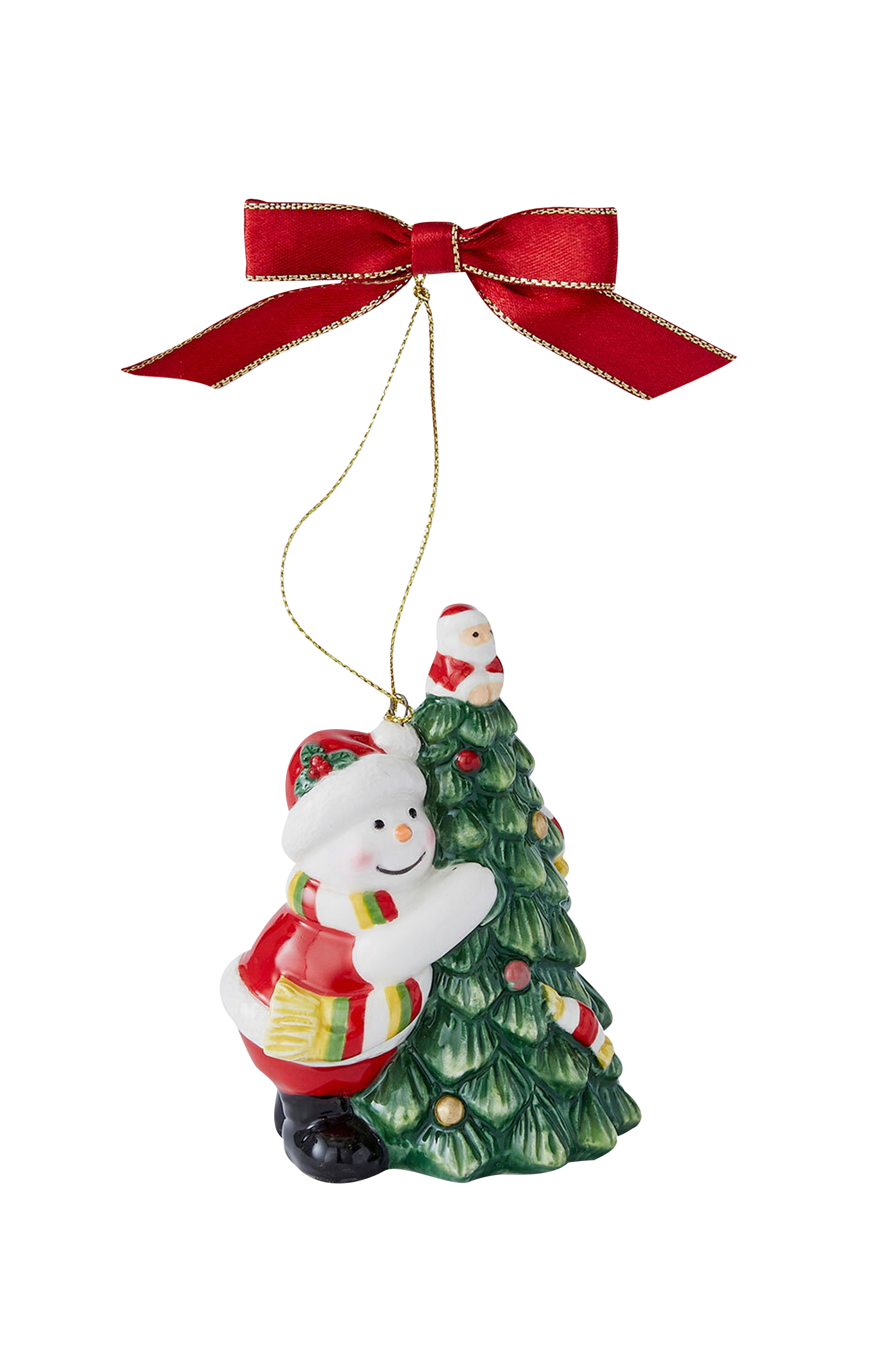 Spode Juletræspynt Tree Hugging Snowman Christmas Tree højde 9 cm