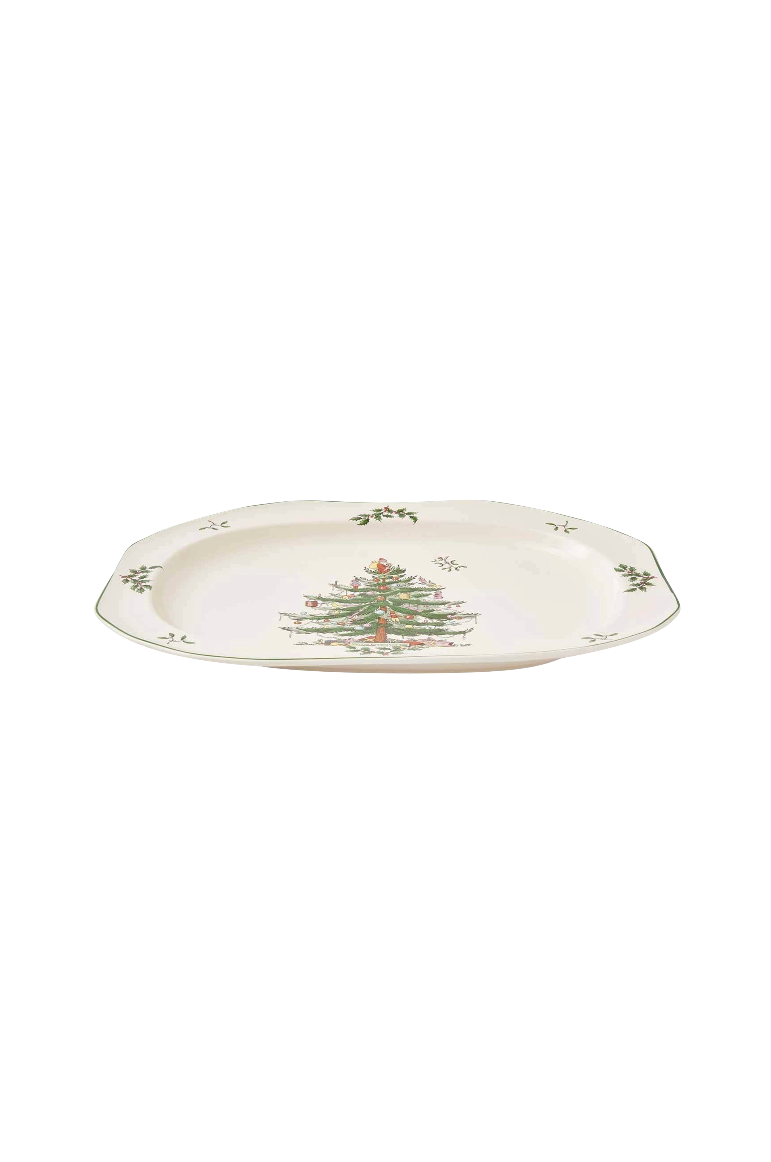 Ovalt serveringsfad i juleserien Christmas Tree af porcelæn fra Spode. Christmas Tree-kollektionen er en af verden mest populære juleservicer.