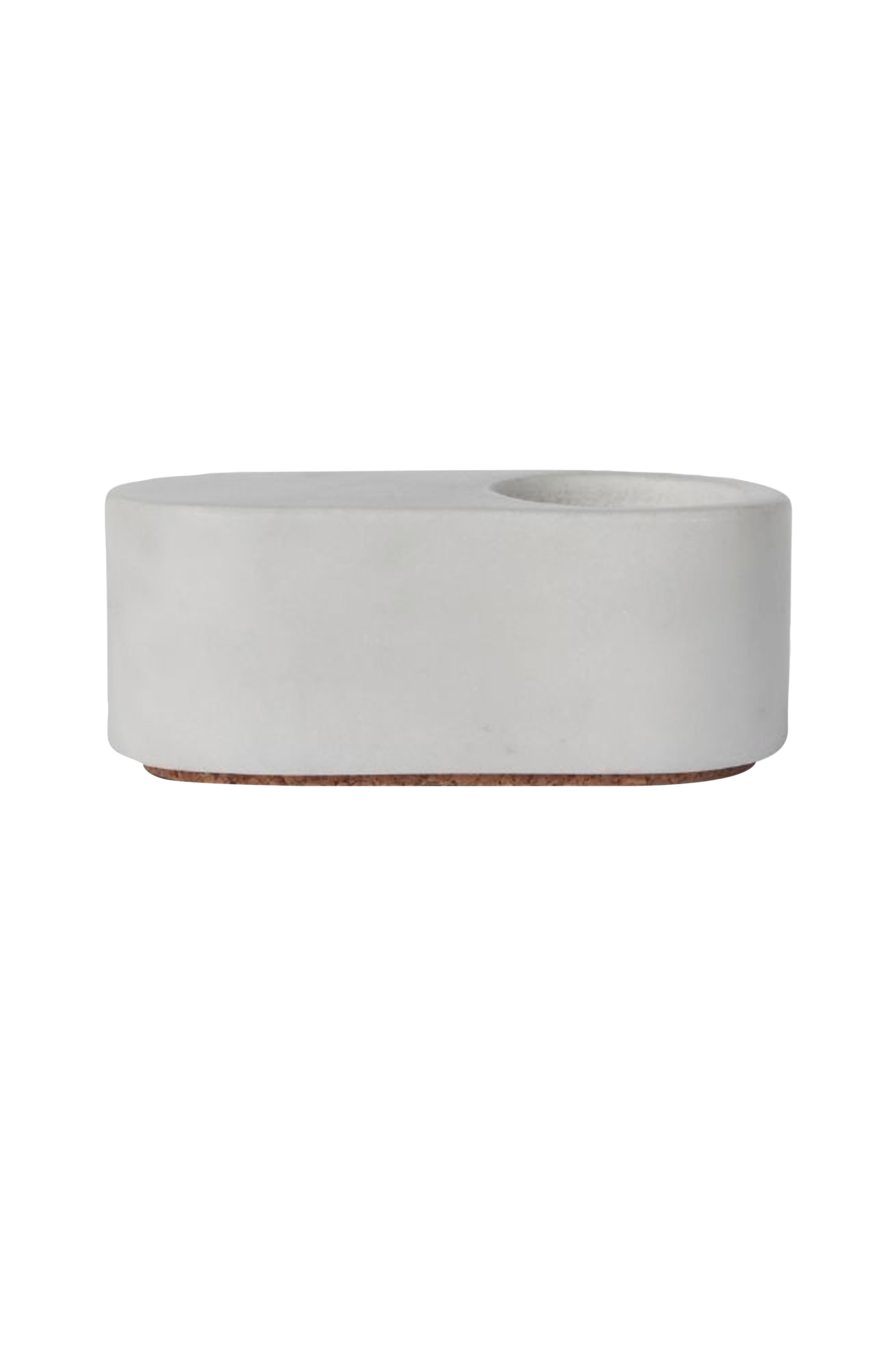 Ovali er en minimalistisk og stilfuld marmorlysestage. Det enkle design og bløde former giver lysestagen et roligt udtryk, der gør den til en velkommen gæst i ethvert hjem. Lysestagen emmer af minimalistisk elegance, og den vil se smuk ud i vindueskarmen, i spisestuen eller på en hylde. Bredde: 3 cm længde: 8 cm højde: 3 cm. Materiale: marmor. Øvrige materialer: kork