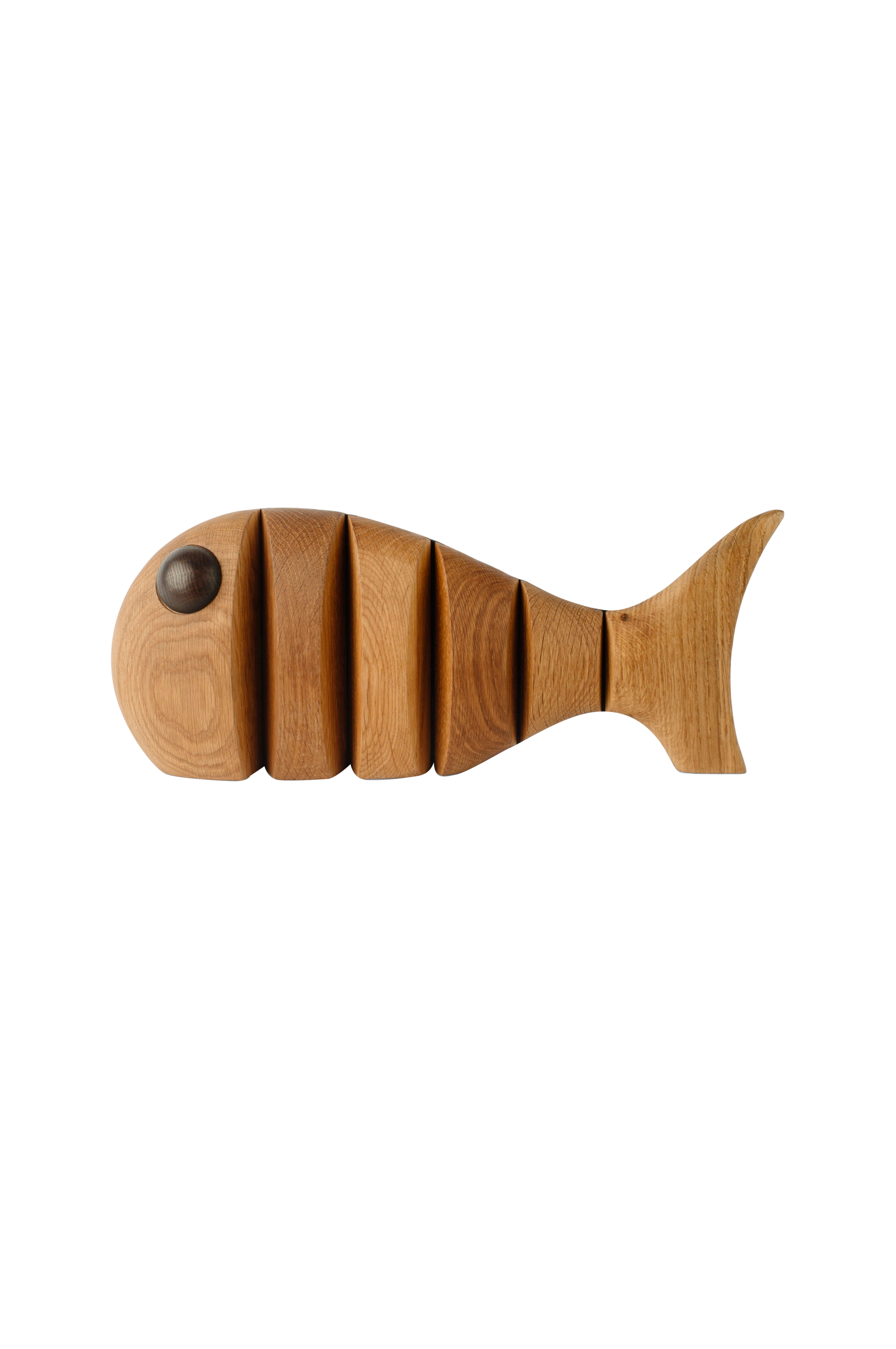 Mega træfisken er designet af Mencke&Vagnby, som igen er lykkedes med at skabe et kreativt design til dit hjem. Træfiguren er lavet af FSC-eg og naturgummi, og fiskens øjne er lavet af røget eg.